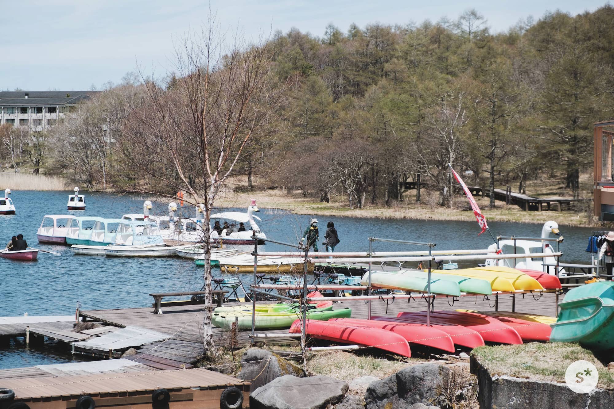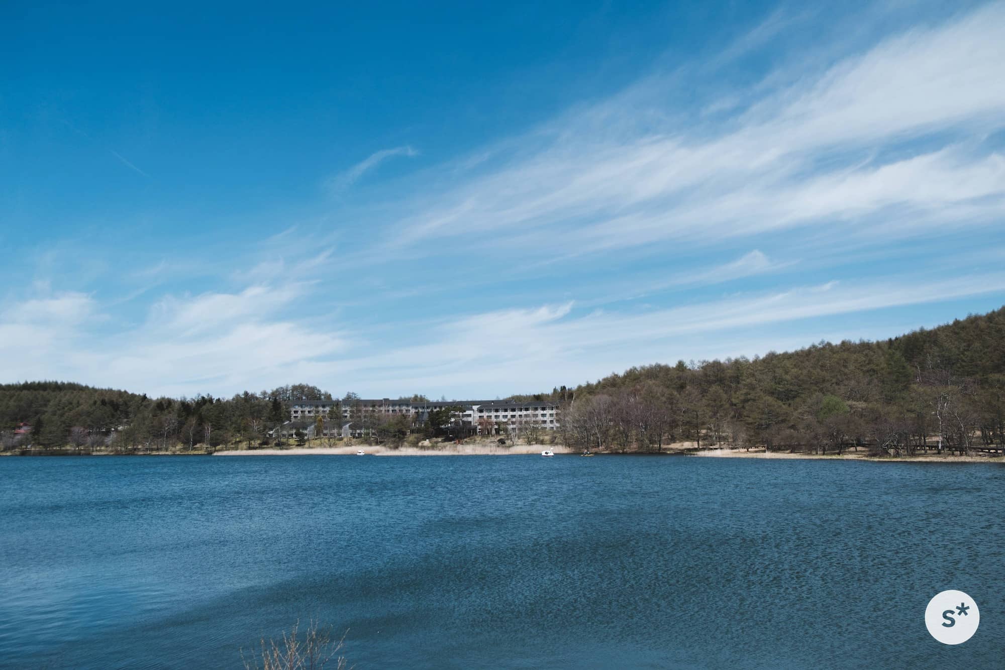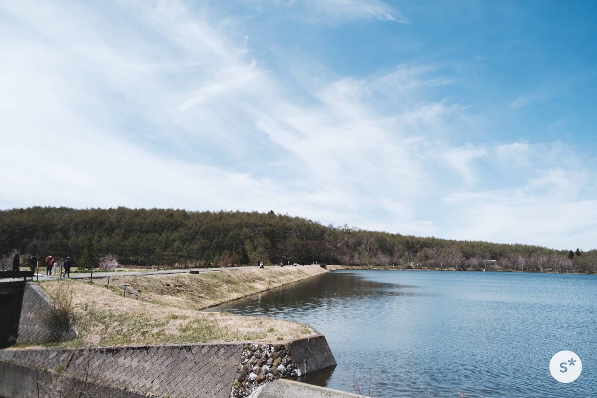 さて、犬と一緒に泊まれてドッグランまであるホテルから出発した後は、車を走らせて白樺湖の横を通り過ぎ、女神湖まで来ました。1時間ほどのドライブです。