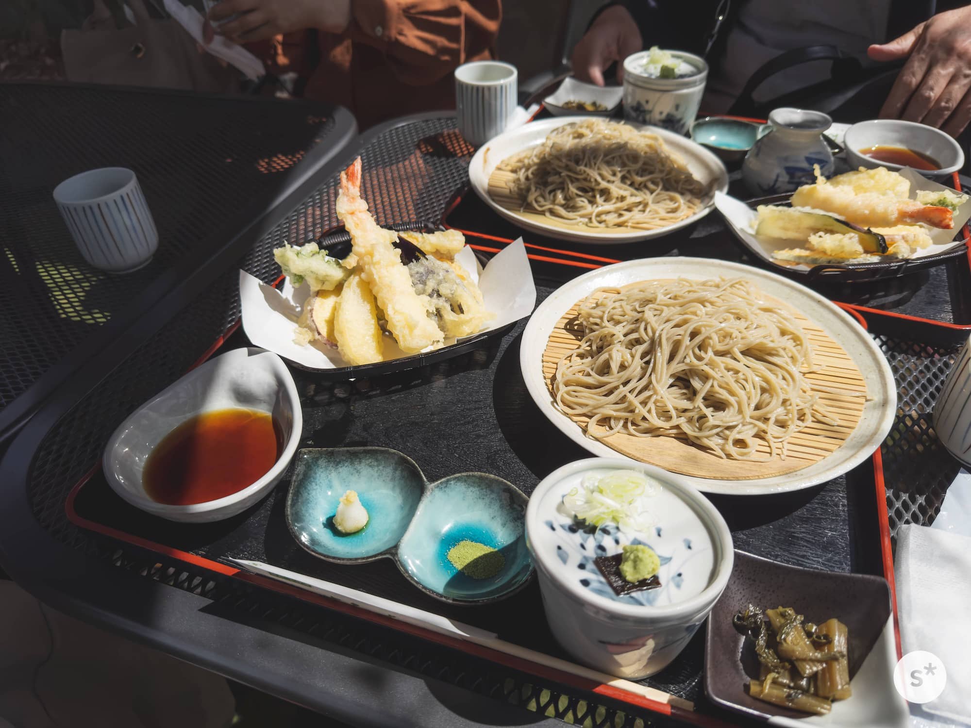僕は天もりそばとそば団子を注文。九州出身の僕はあまりおそば文化に触れてこなかったので、そば団子は初めて食べました。くるみだれを絡めて食べるそば団子、めちゃめちゃおいしかった。