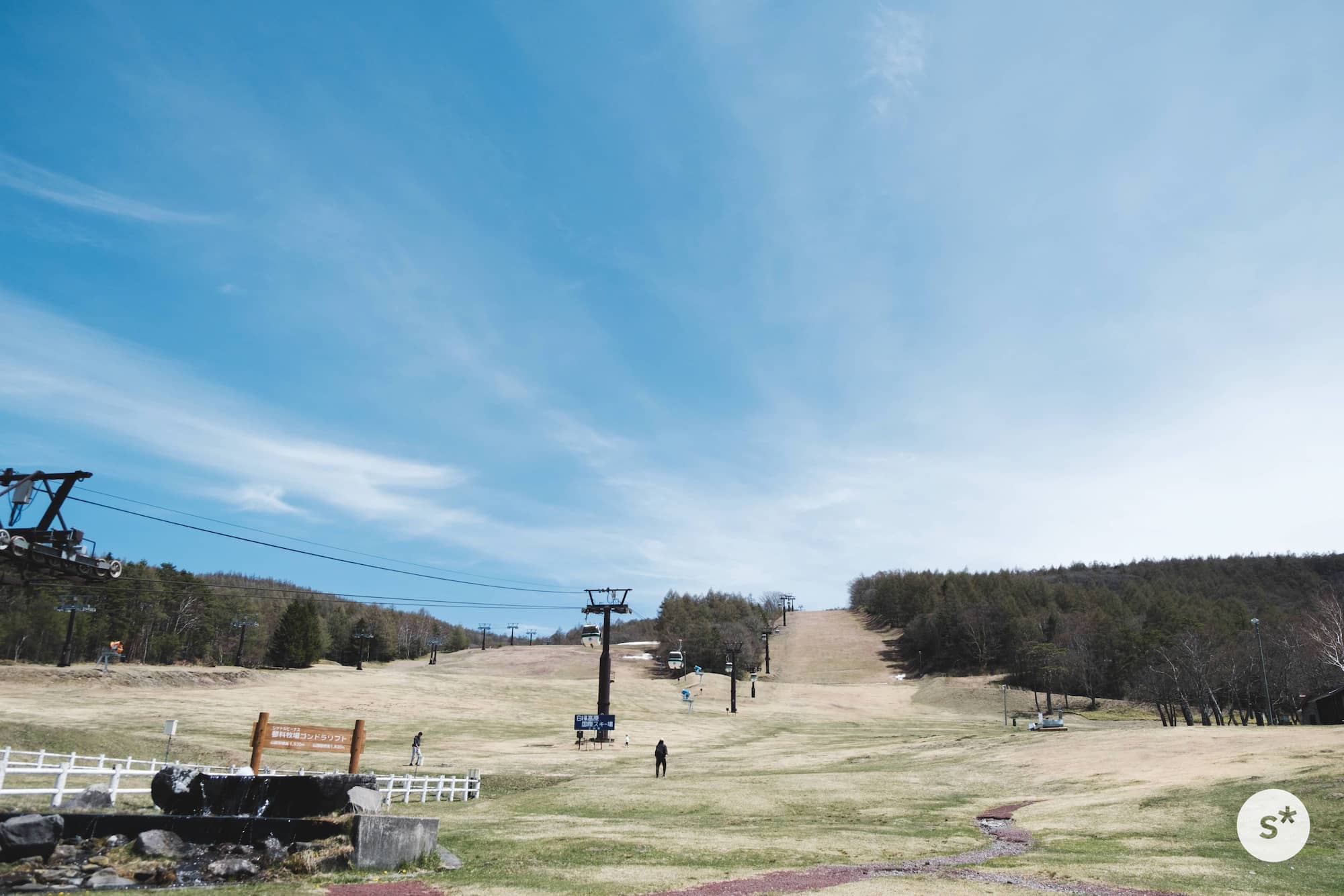 冬季はスキー場として営業しているこの場所、ゴールデンウィークになってもゲレンデ上には少しだけ雪が残っていました。