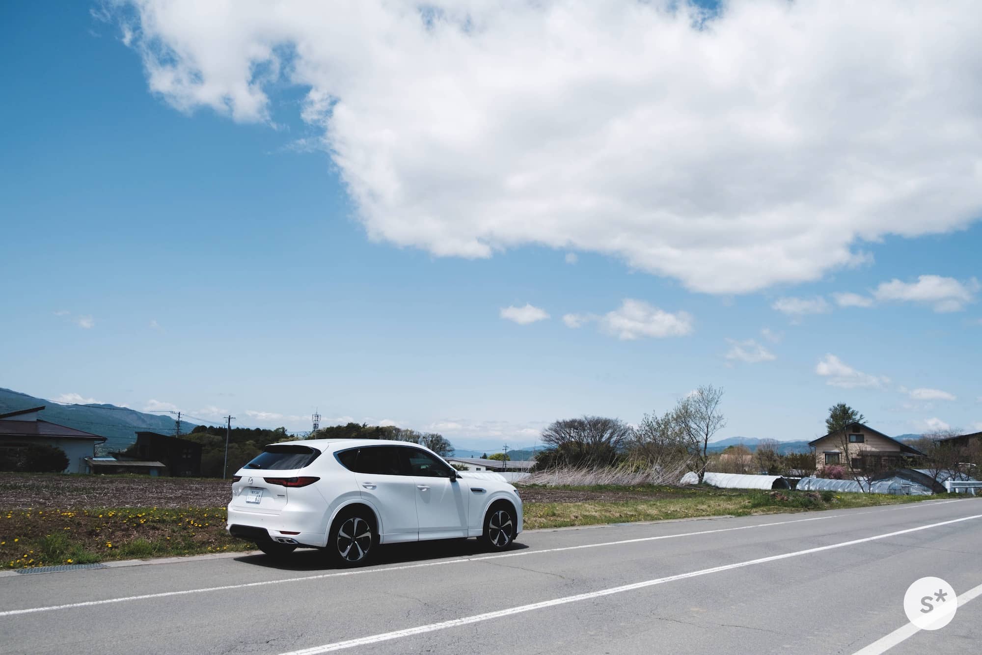 諏訪南インターで高速を降りて、あとは下道で向かいます。道中はずっとのどかな田園風景が広がっていて、思わず車を止めて写真を撮りました。天気いいなあ〜