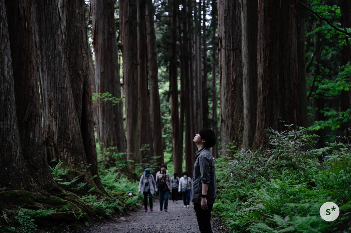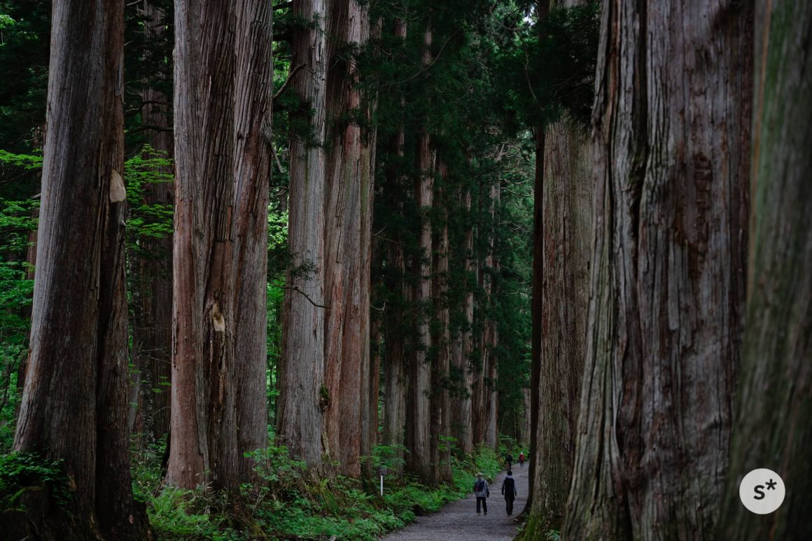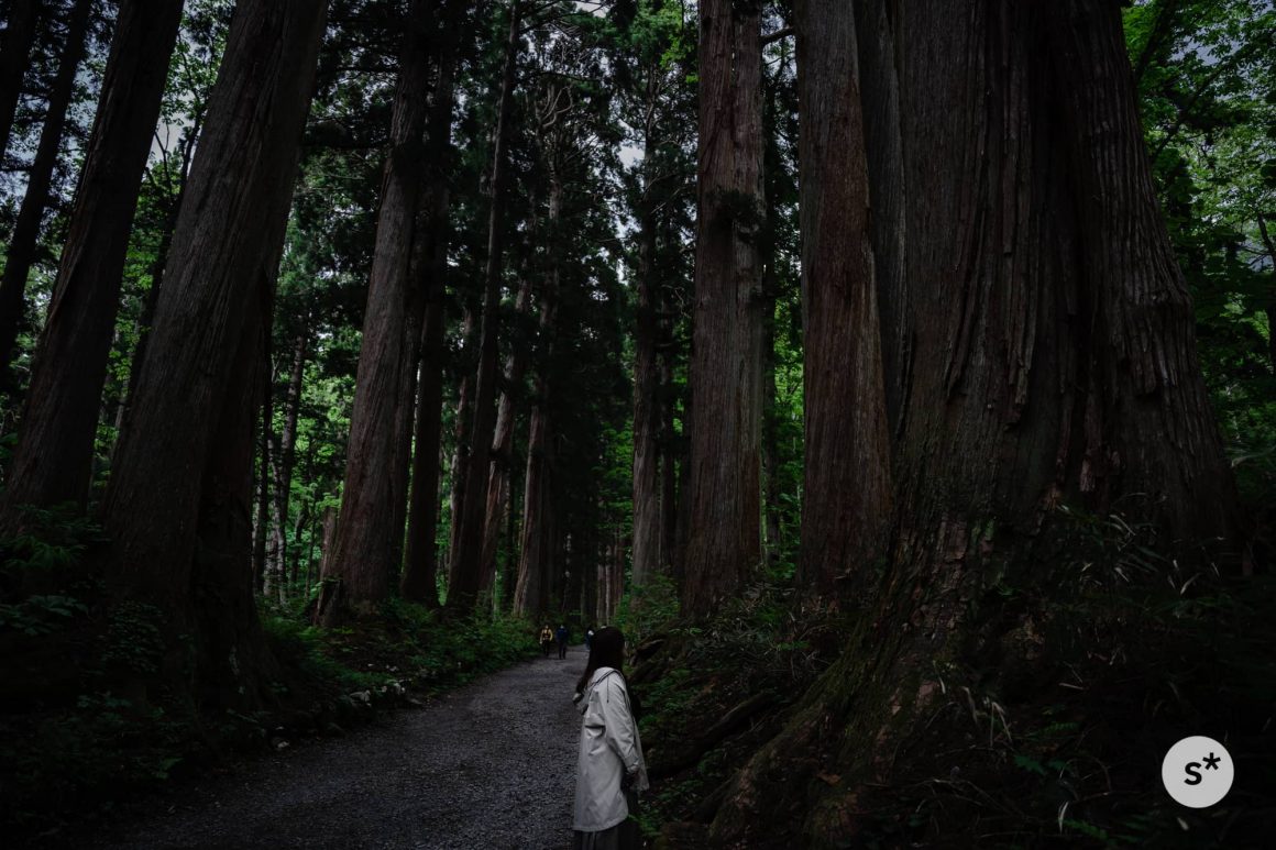 そのすごさを写真で伝えるのは限度があると思いますが、写っている人と比べてみたら少しは伝わるかな。この大きさの杉の木が1本あるだけでも圧倒されるのに、それが何本も連なっているから、足を踏み入れた瞬間は言葉も出ませんでした。