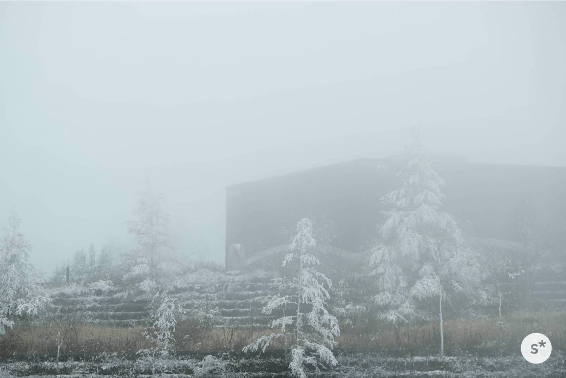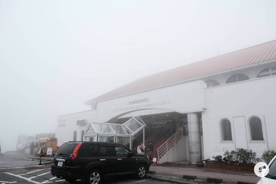 道の駅に到着。このときの気温は1℃、油断していた僕らはあまりの寒さに凍えていました。道の駅のテラスからは美しい景色を楽しめる——はずなのですが、この霧の中では何も見えません。