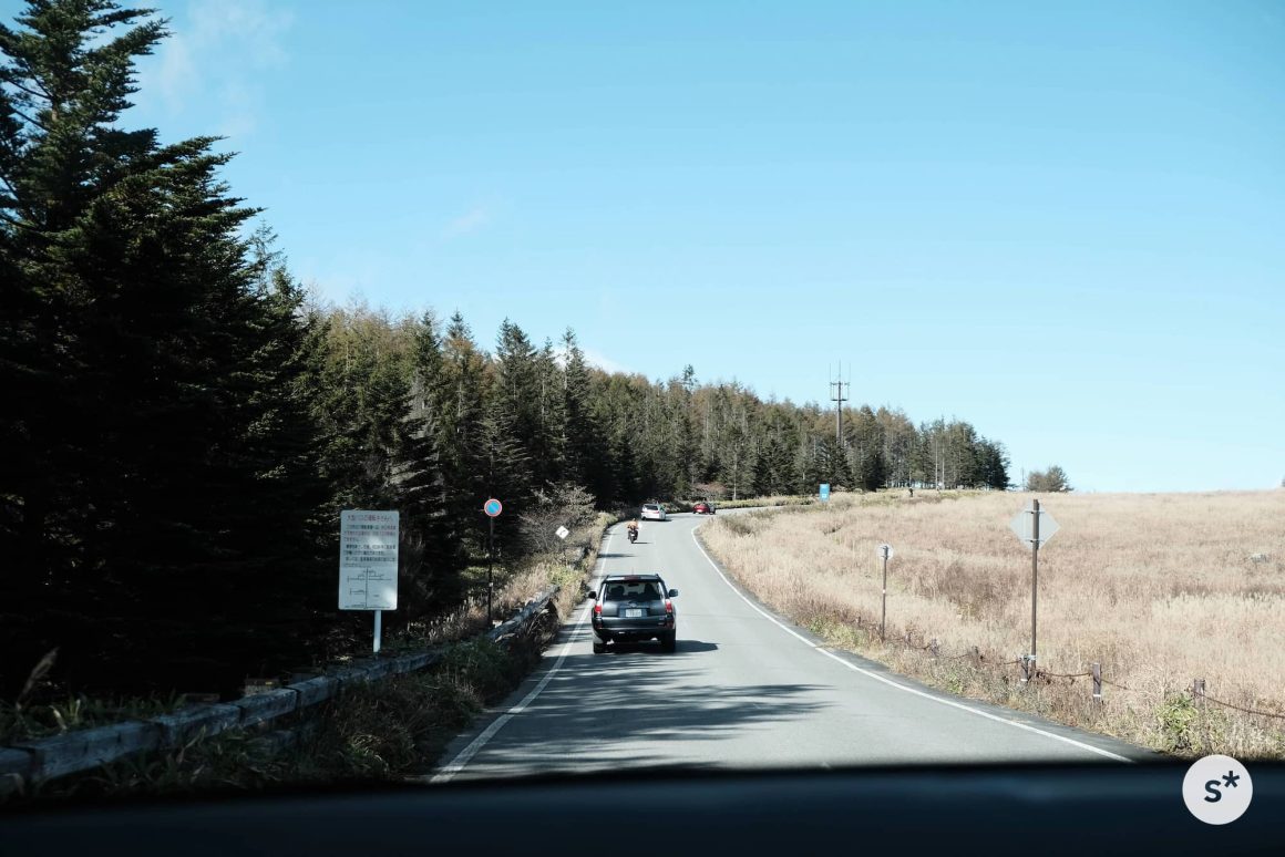 2年前は途中で暗くなってしまって断念しましたが、今回はまだまだ明るい時間帯なので、ビーナスラインをさらに進むことに。きれいな紅葉を見られることを期待しつつ、標高2,034mの高原を目指しました。