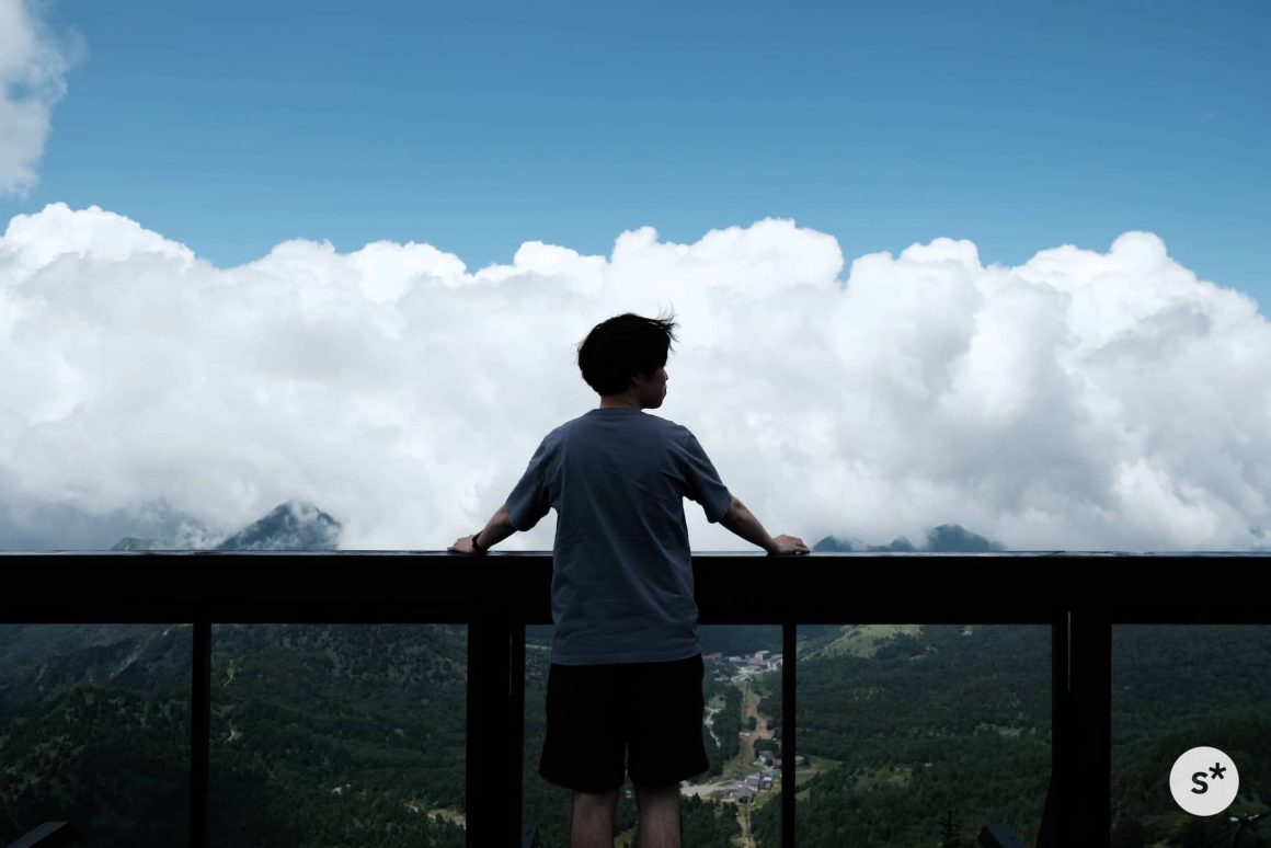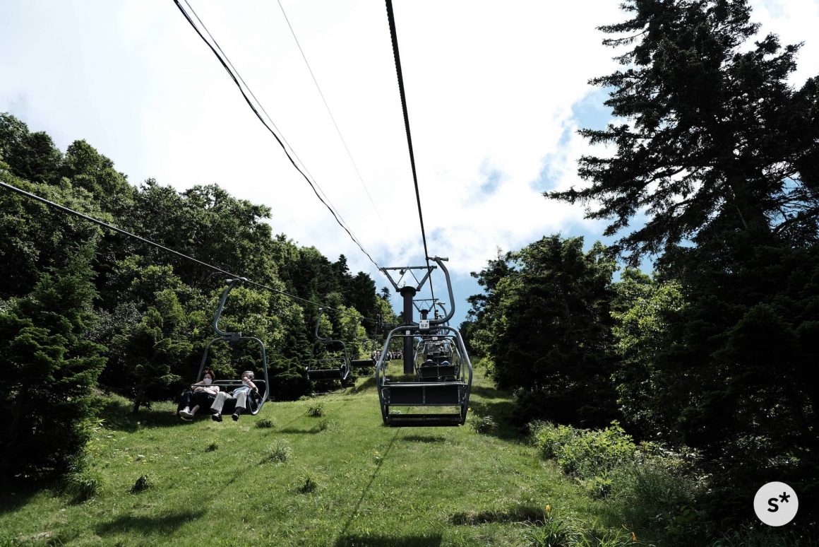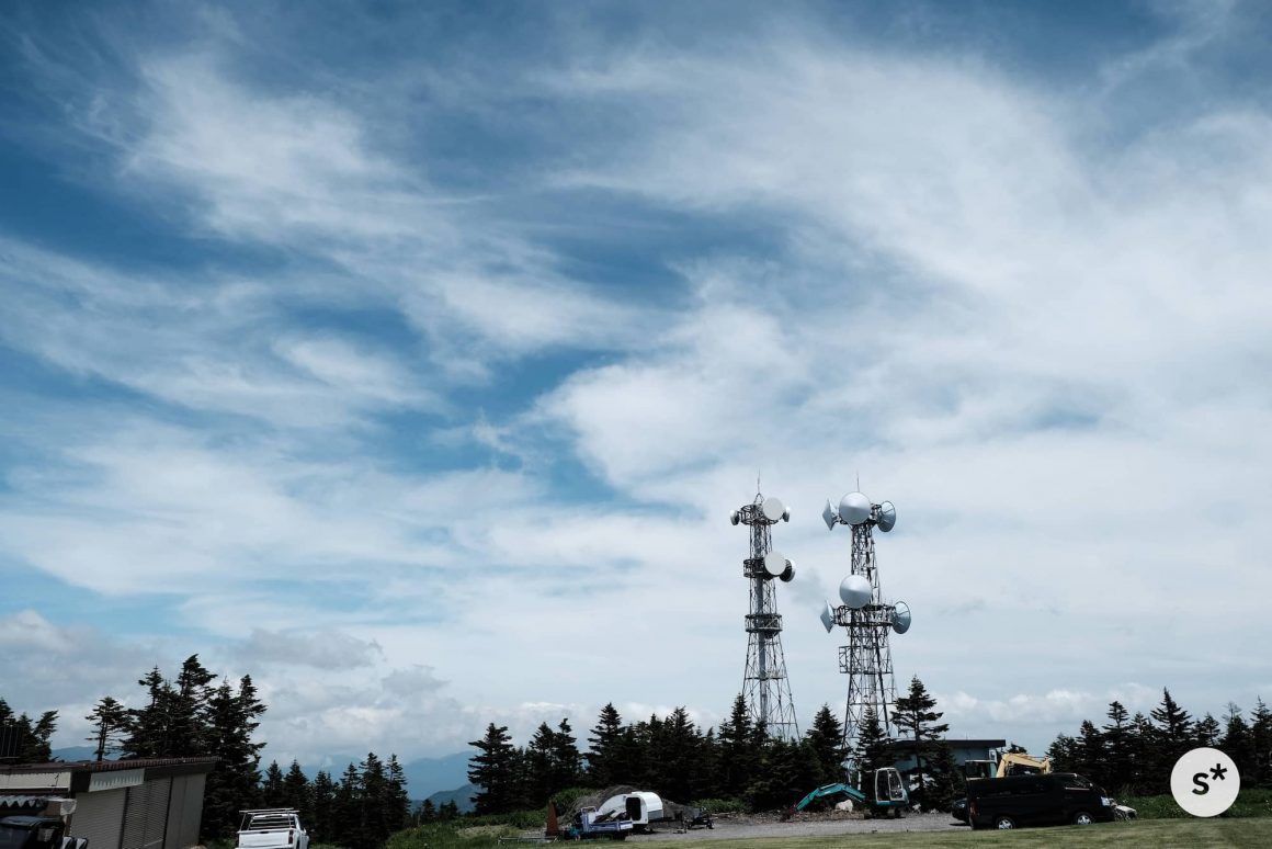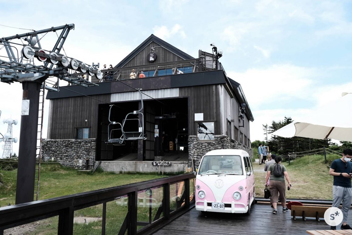 リフトに乗って標高2,307mの山頂に辿り着きました。山頂にある「満天ビューテラス」は、訪れた数日前にオープンしたばかりだったようで、ところどころまだ作業中でした。