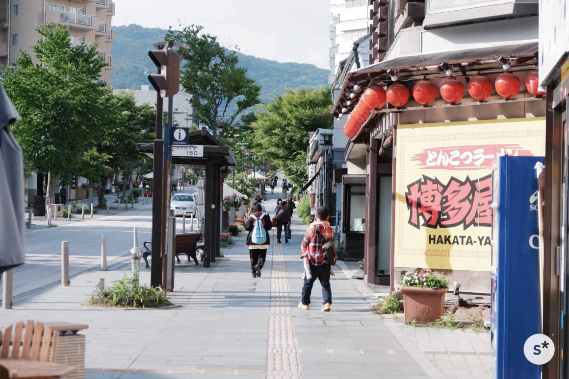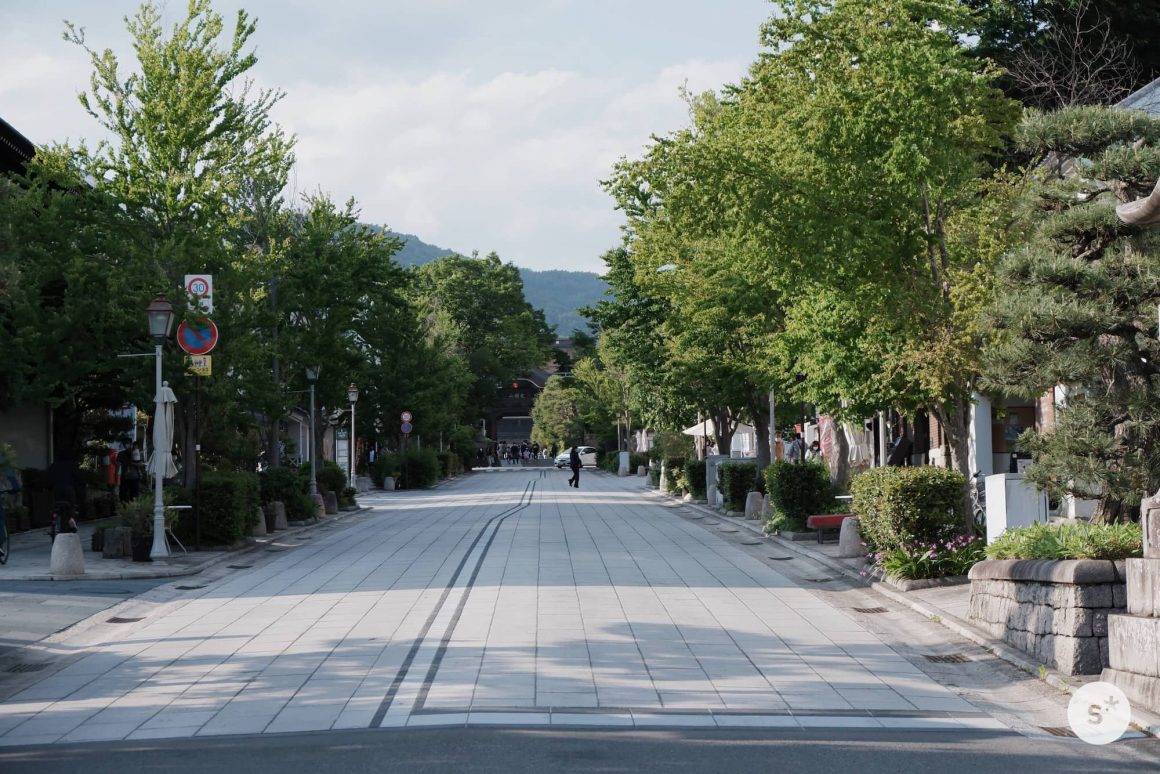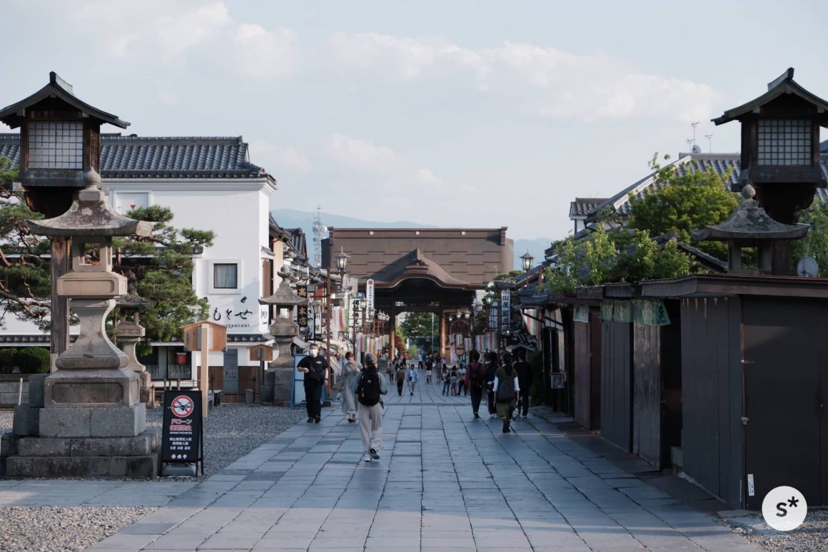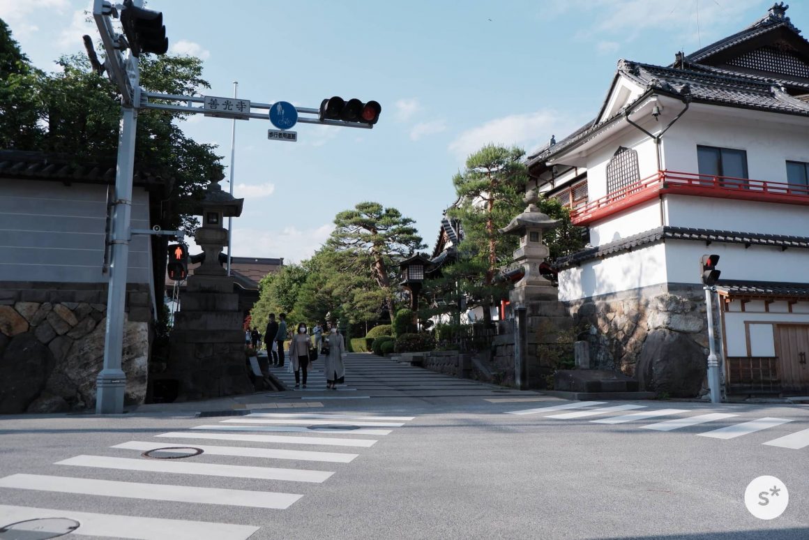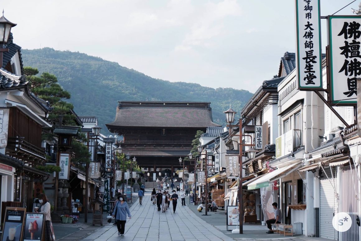 カフェでのんびりしたあとは、再び善光寺に向けて歩き始めました。ずっと石畳で整備されていたり、趣のあるレストランがあったりなど、いい感じの通りです。