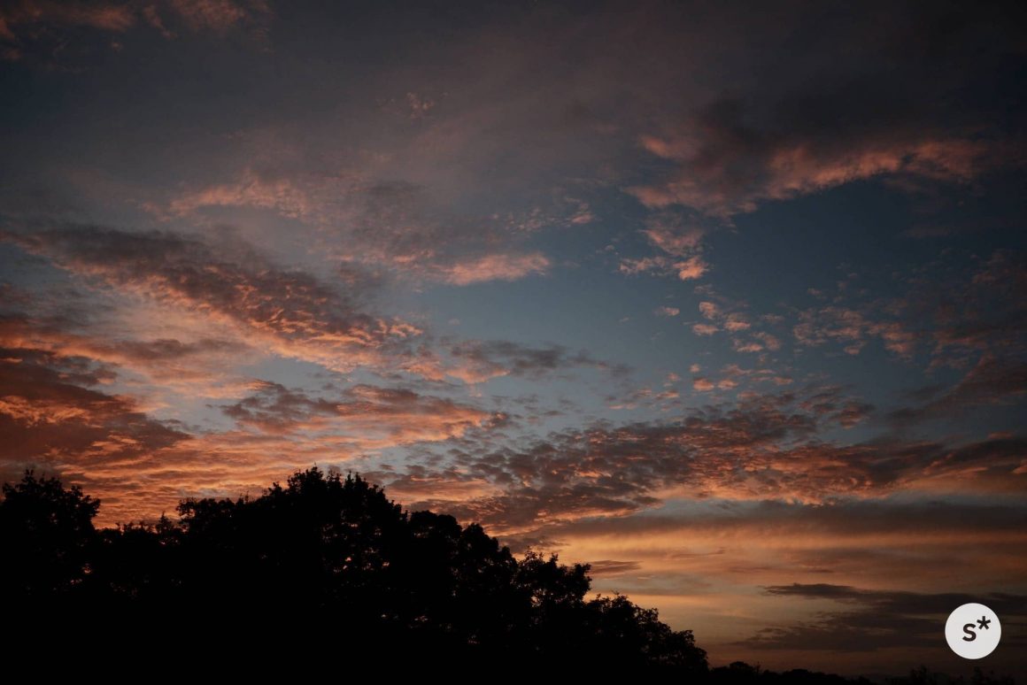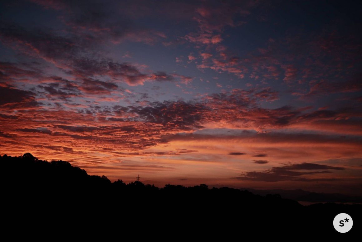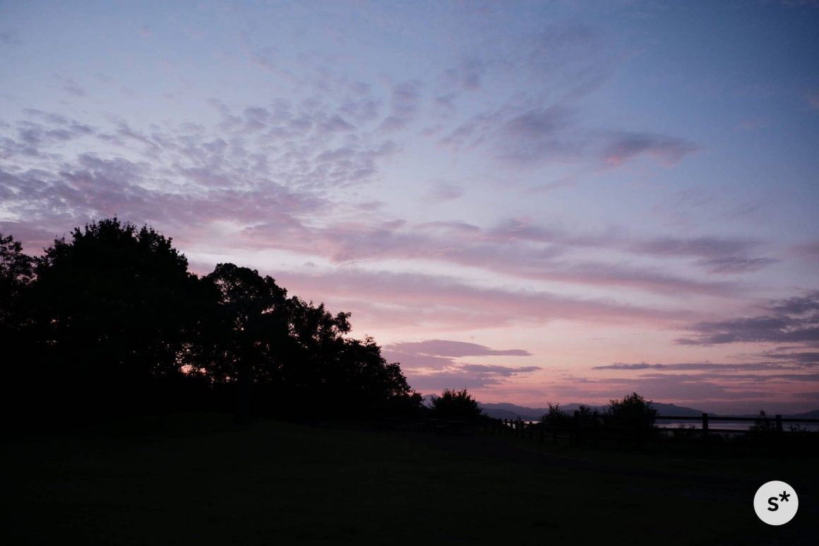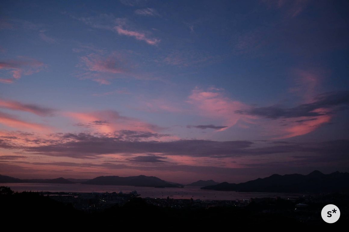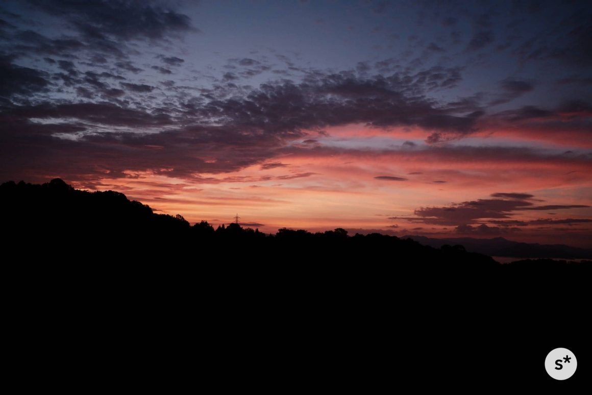 すると、ちょうど朝焼けの時間だったのです。空はみるみる絵画のような色に変化していきました。