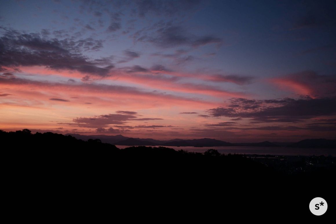 夜通し運転し、朝5時頃に広島県の宮島SAを通りかかりました。ちょうど空が明るくなってきたので、カメラを片手に車を降りてみました。