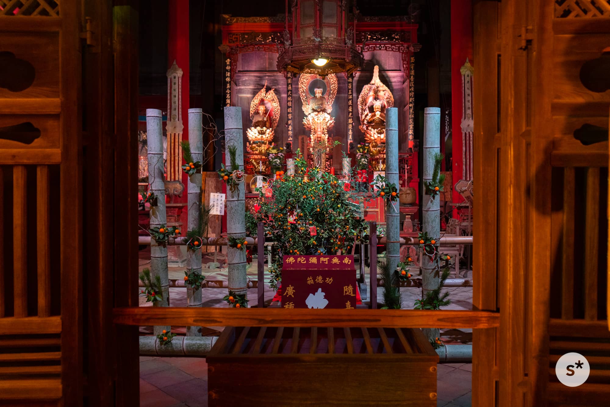 無数のランタンが煌めき、大変な人出でごった返すメイン会場の湊公園や新地中華街とうって変わり、いちばん奥まった場所にある「興福寺」には静かな時間が流れています。
