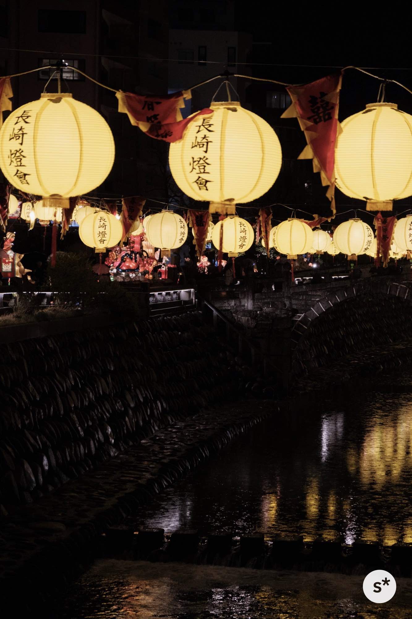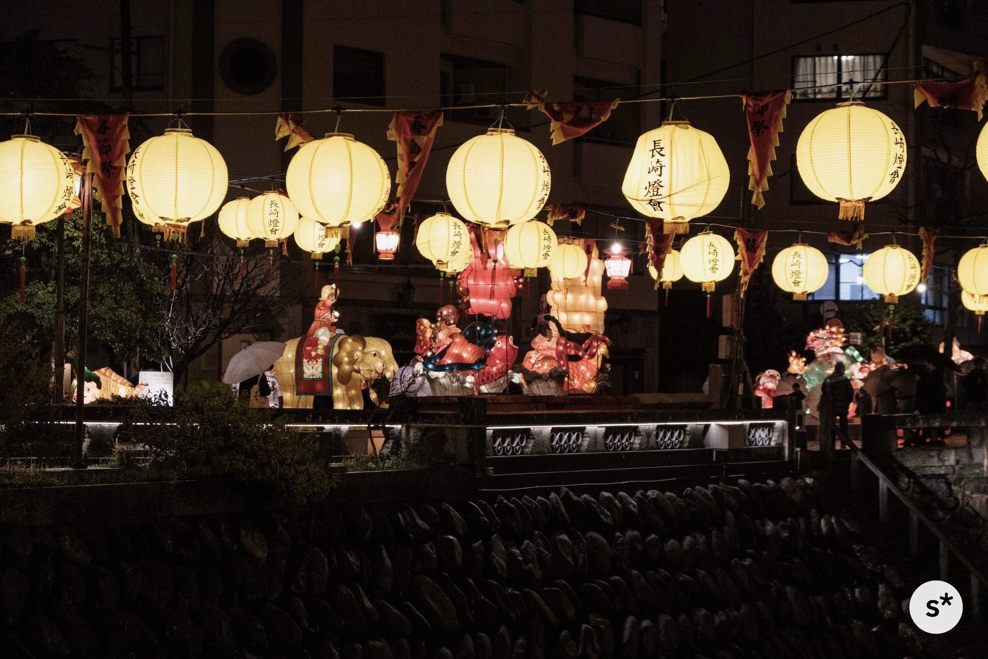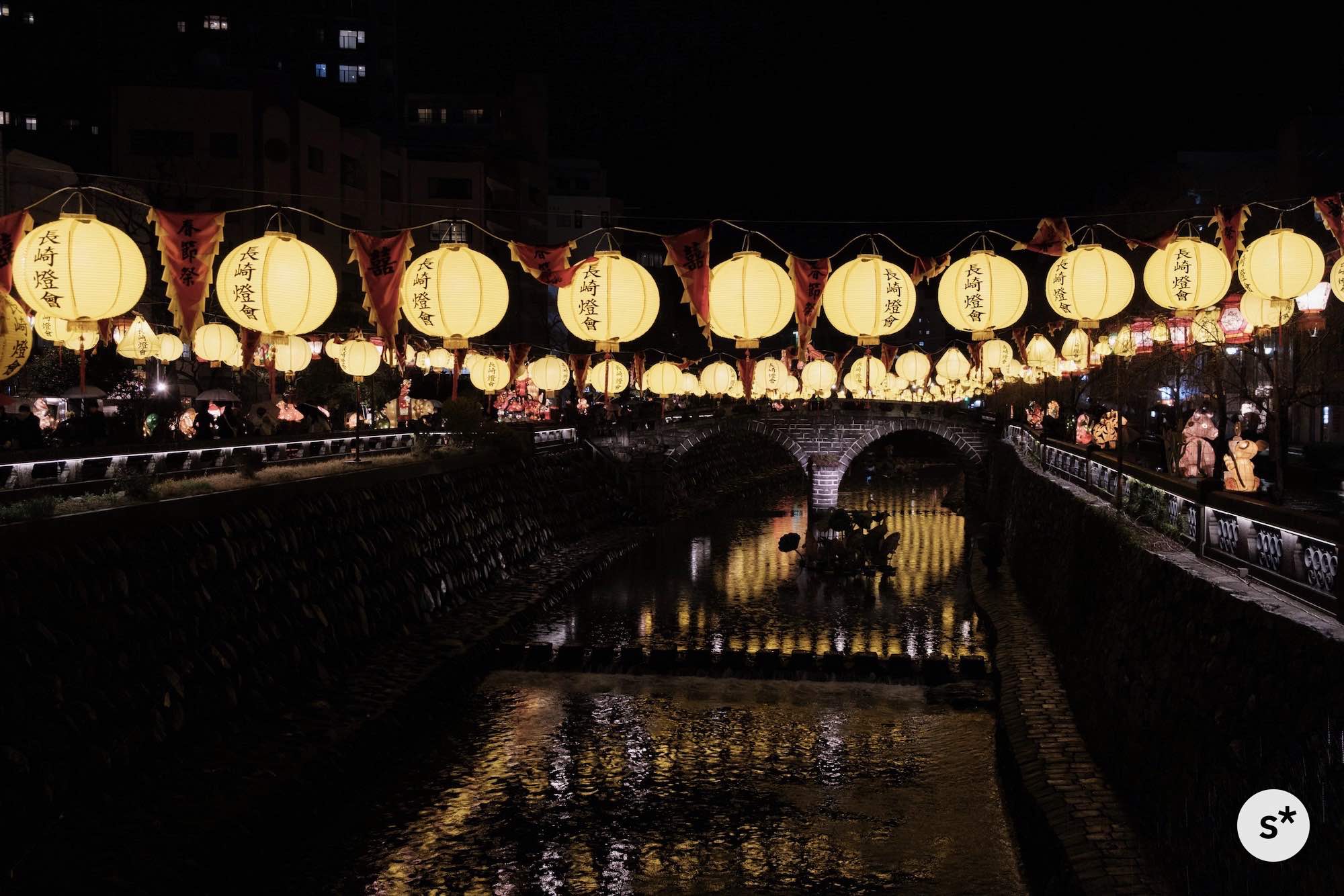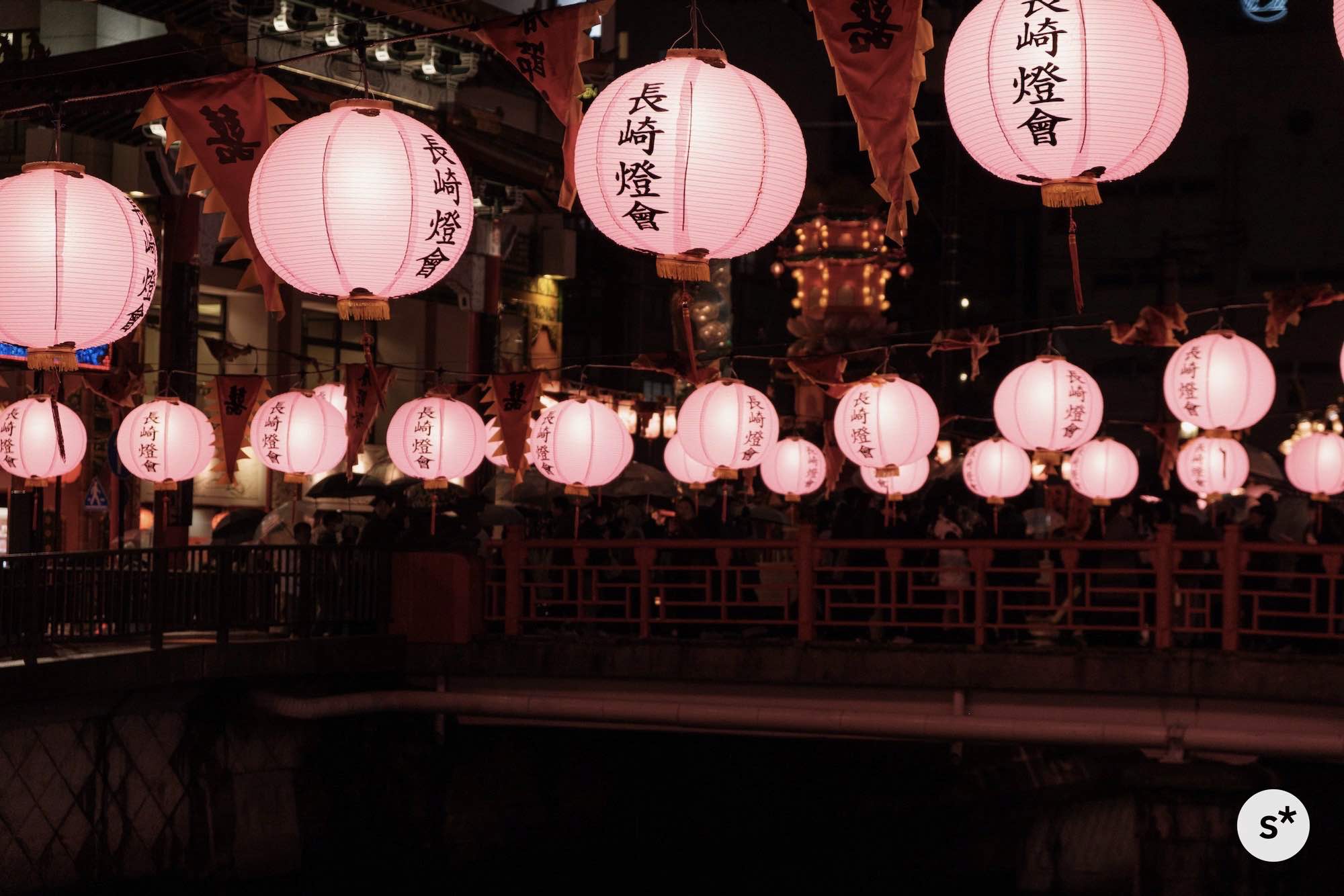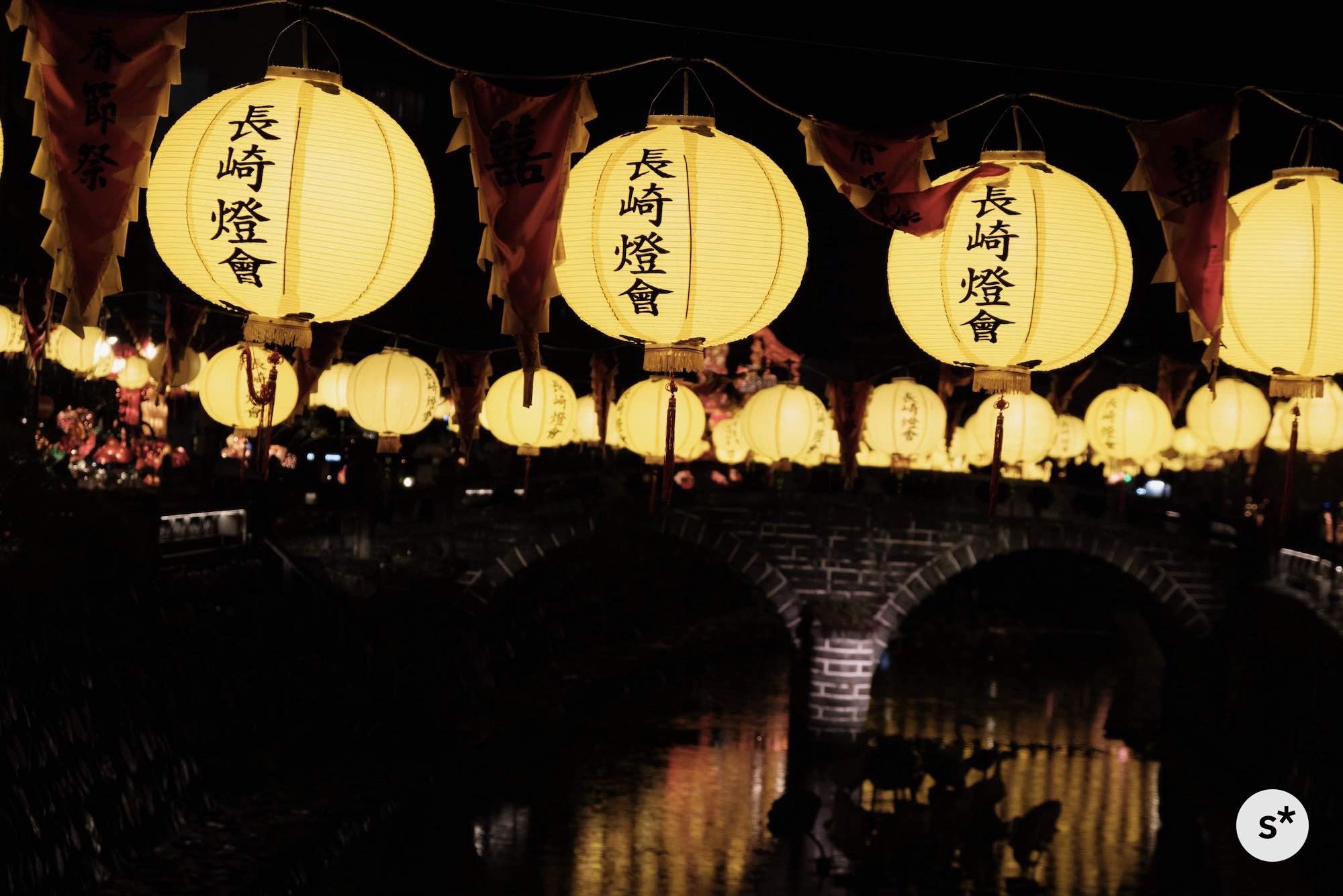 散策コースは全然決めていなかったのですが、まずは中島川の上にかかるランタンを見て、新地中華街の方向に歩きながら、メイン会場である湊公園を目指そうかな。