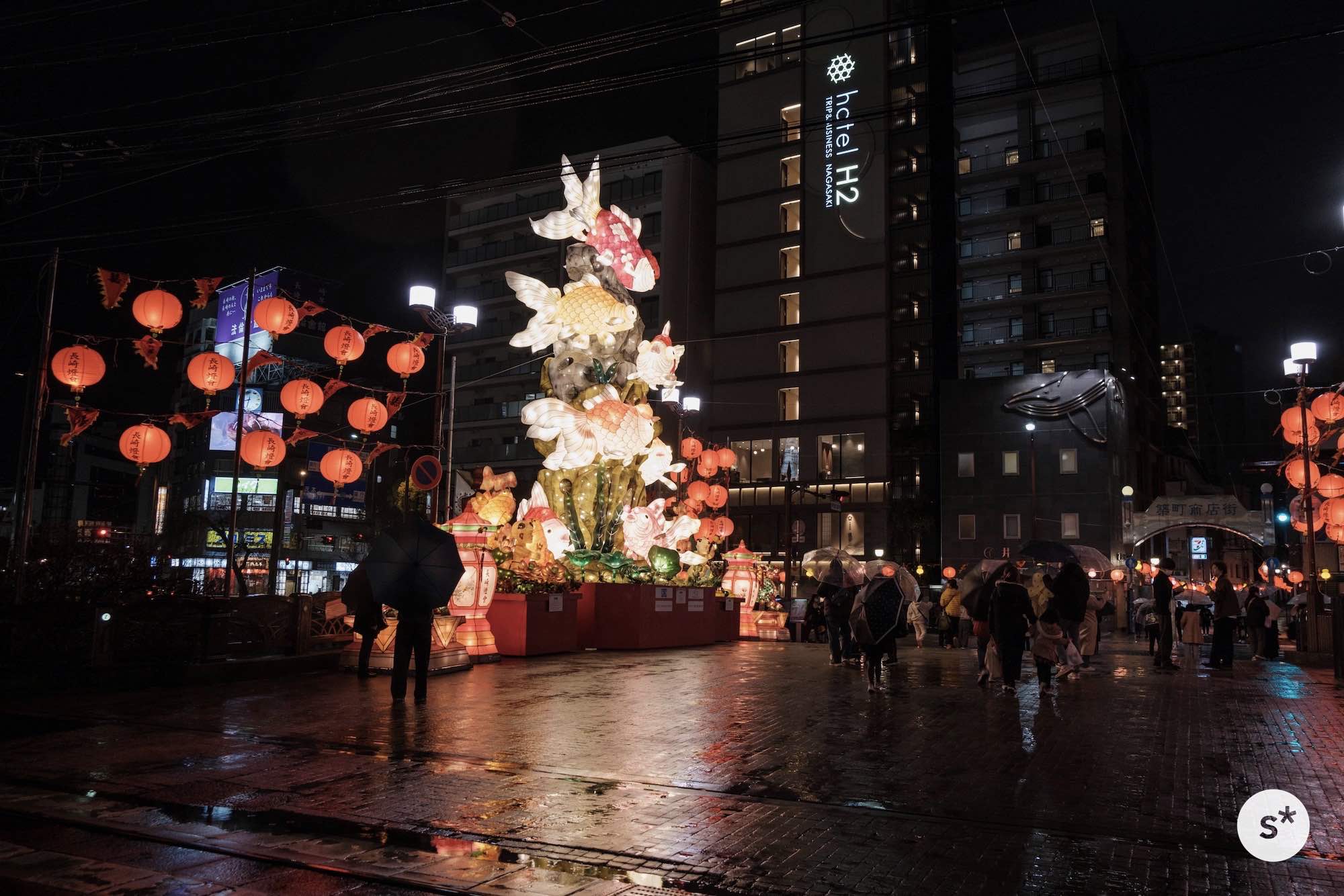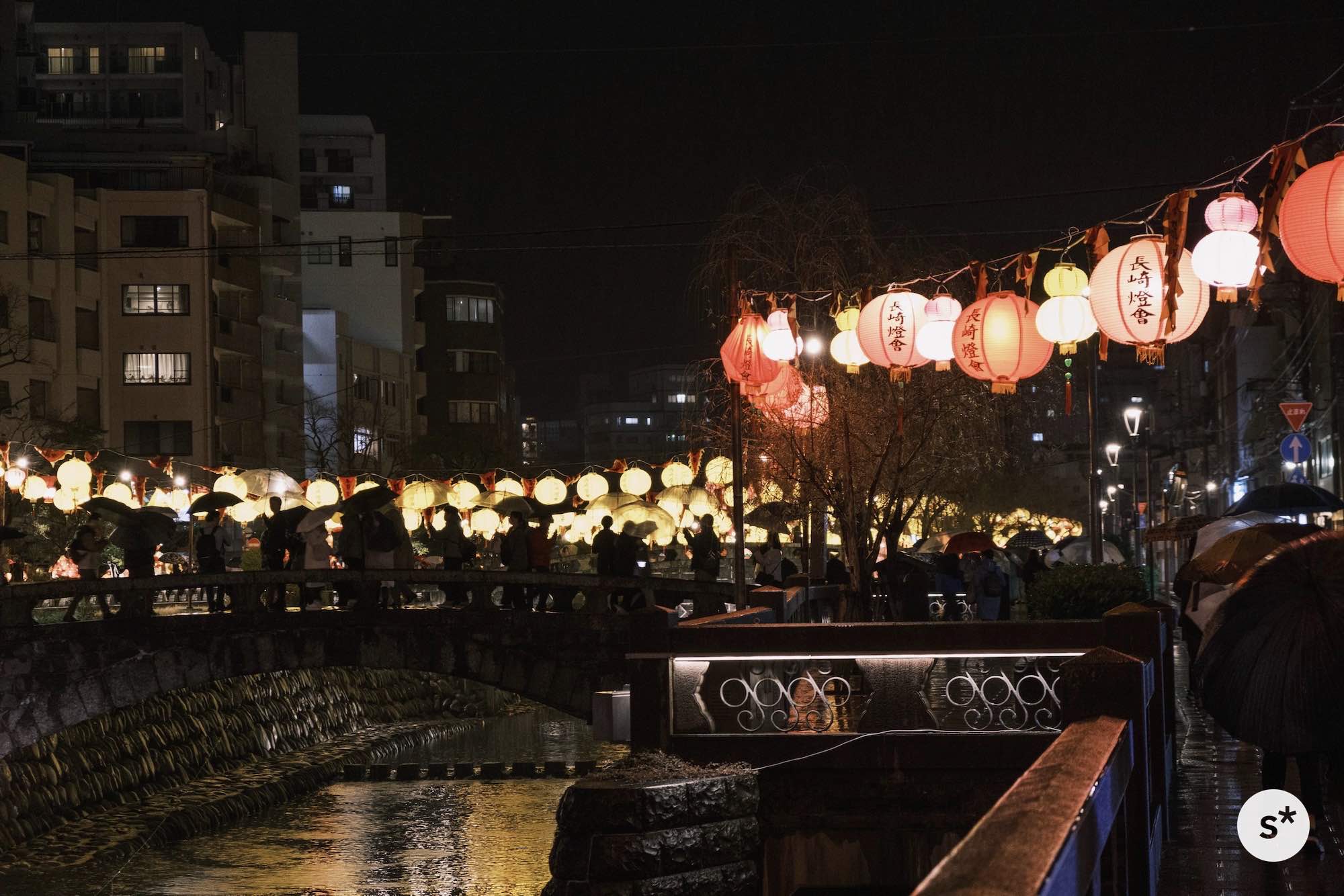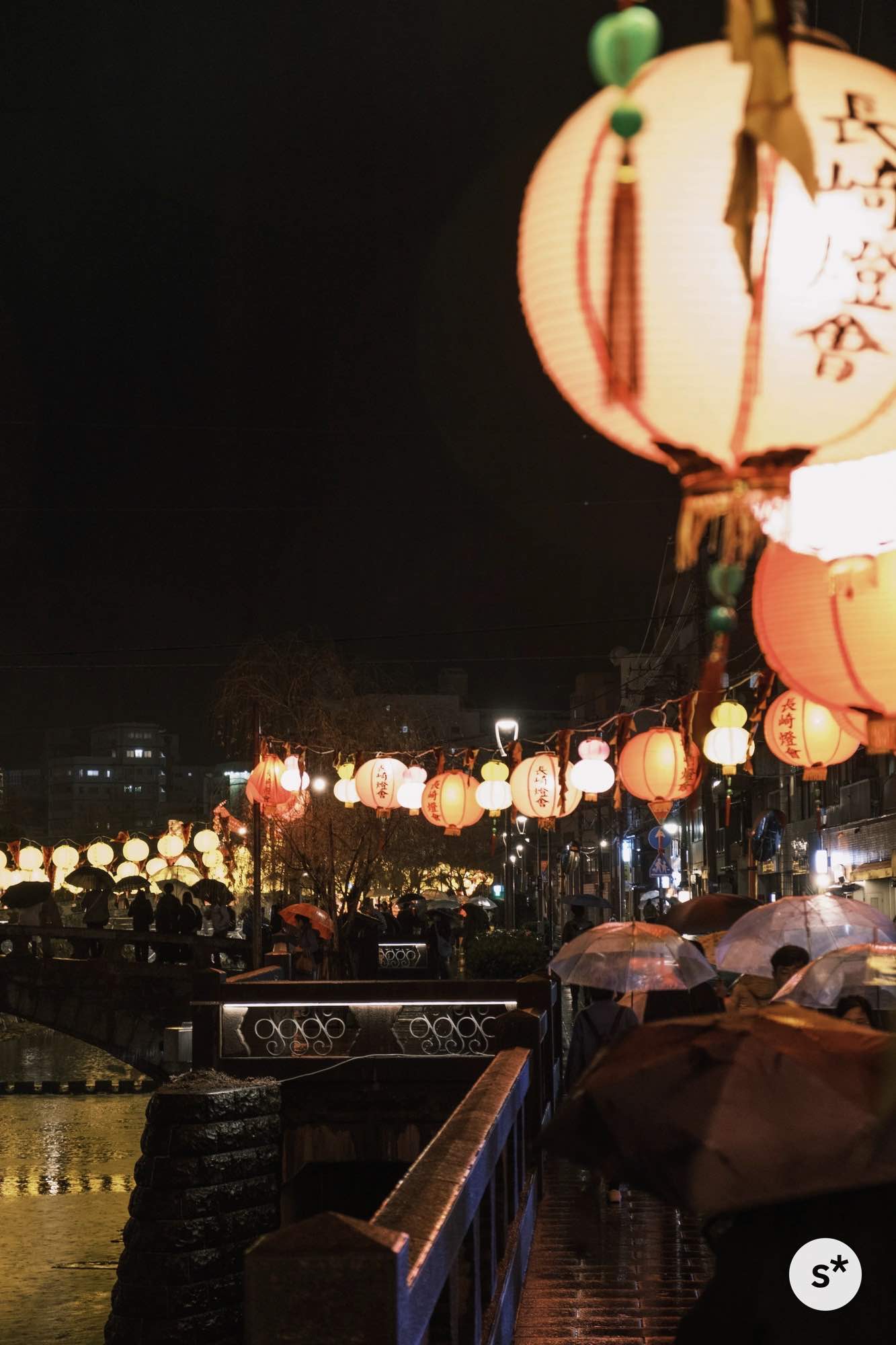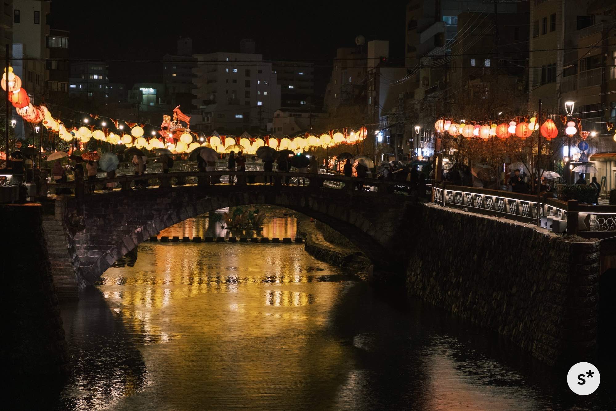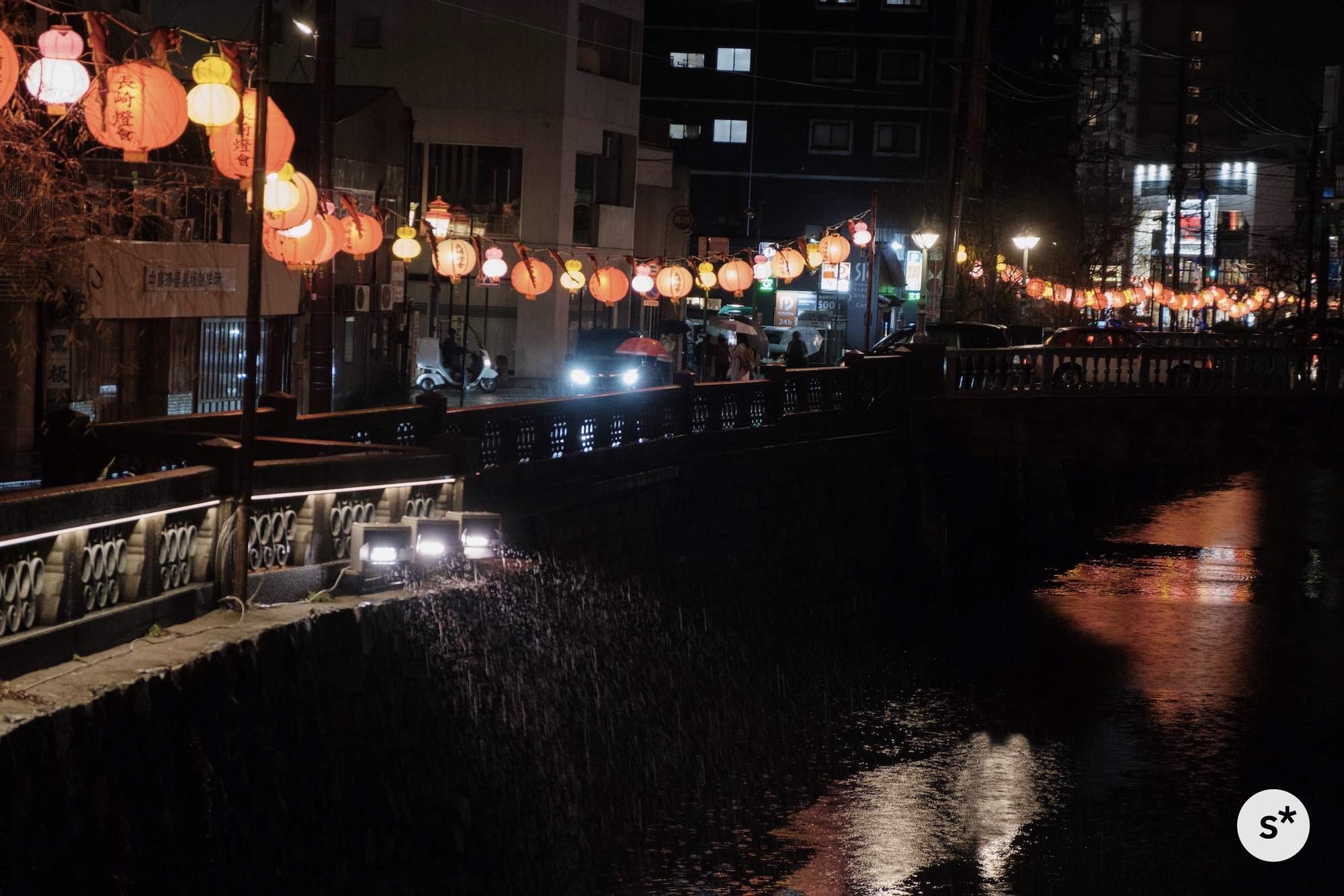 散策コースは全然決めていなかったのですが、まずは中島川の上にかかるランタンを見て、新地中華街の方向に歩きながら、メイン会場である湊公園を目指そうかな。