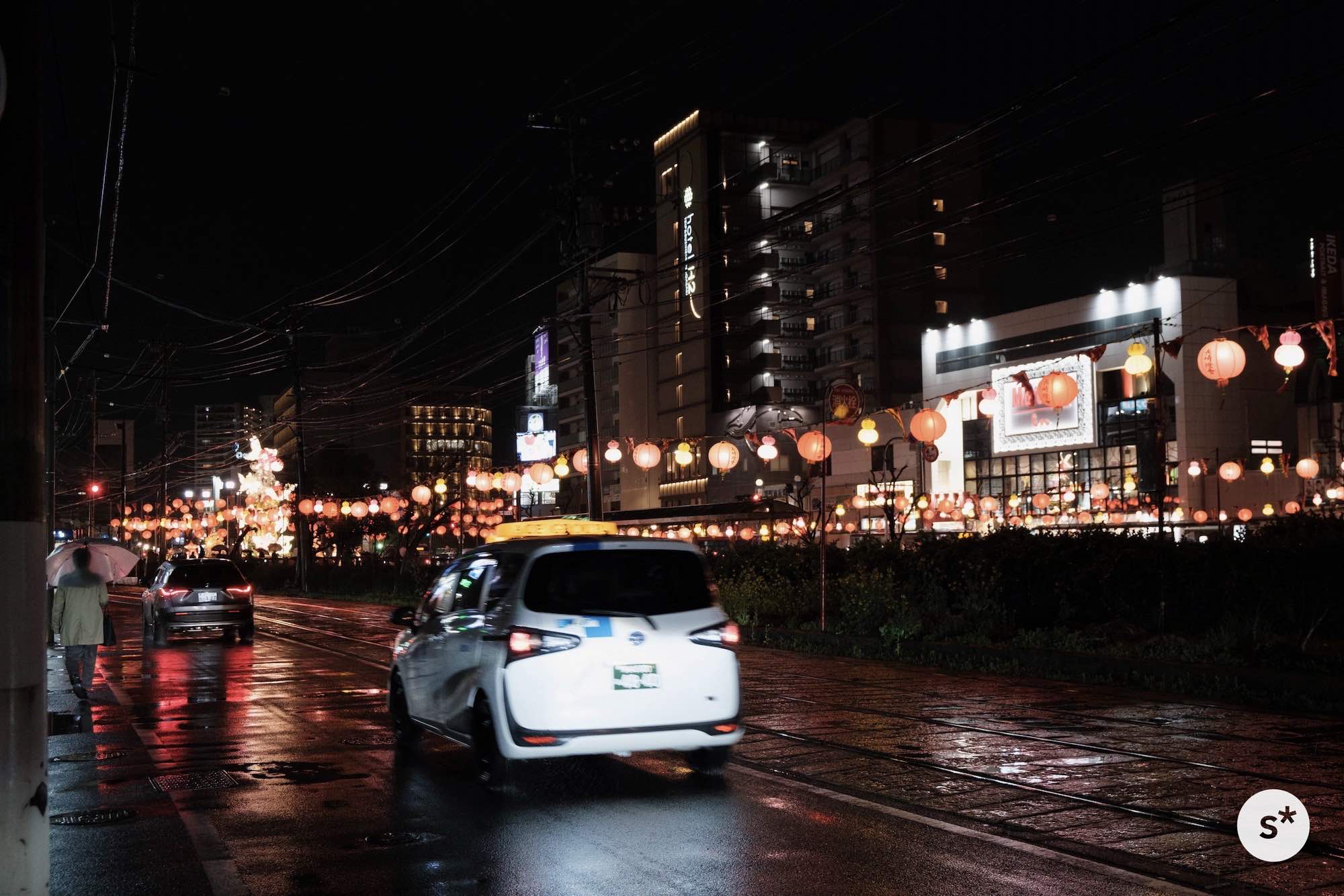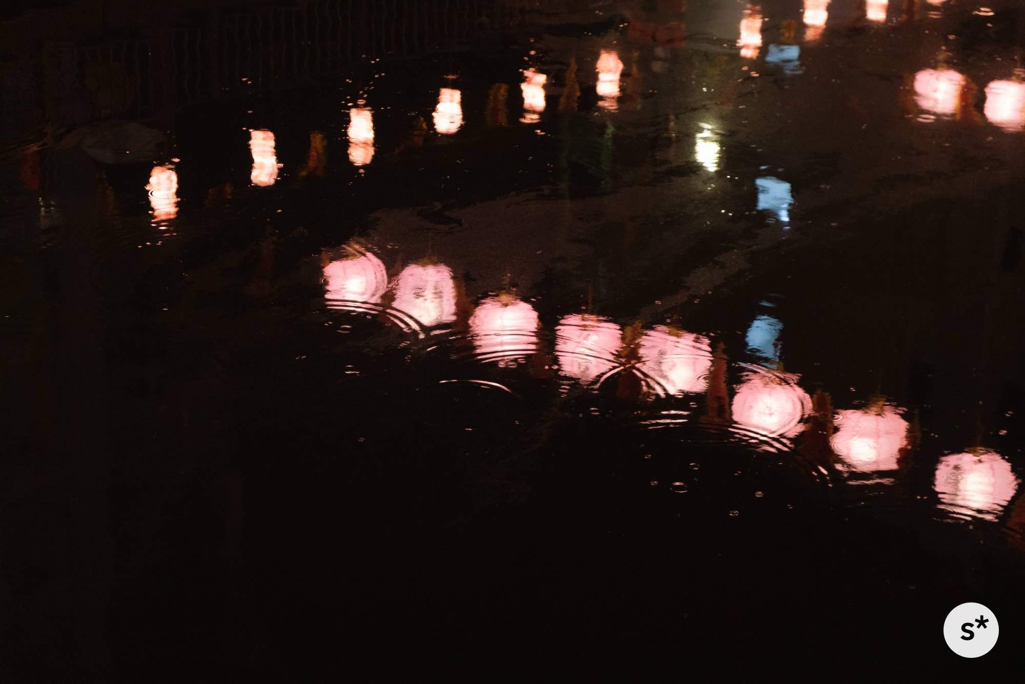 2日目は丸々所用だし、3日目の夜は飛行機の中なので、夜空に光り輝くランタンを見るのは1日目の夜しか許されませんでした。あまり時間もありませんでしたが、せっかくいいタイミングで帰省できたので、雨の中1時間ほど巡ってきました。