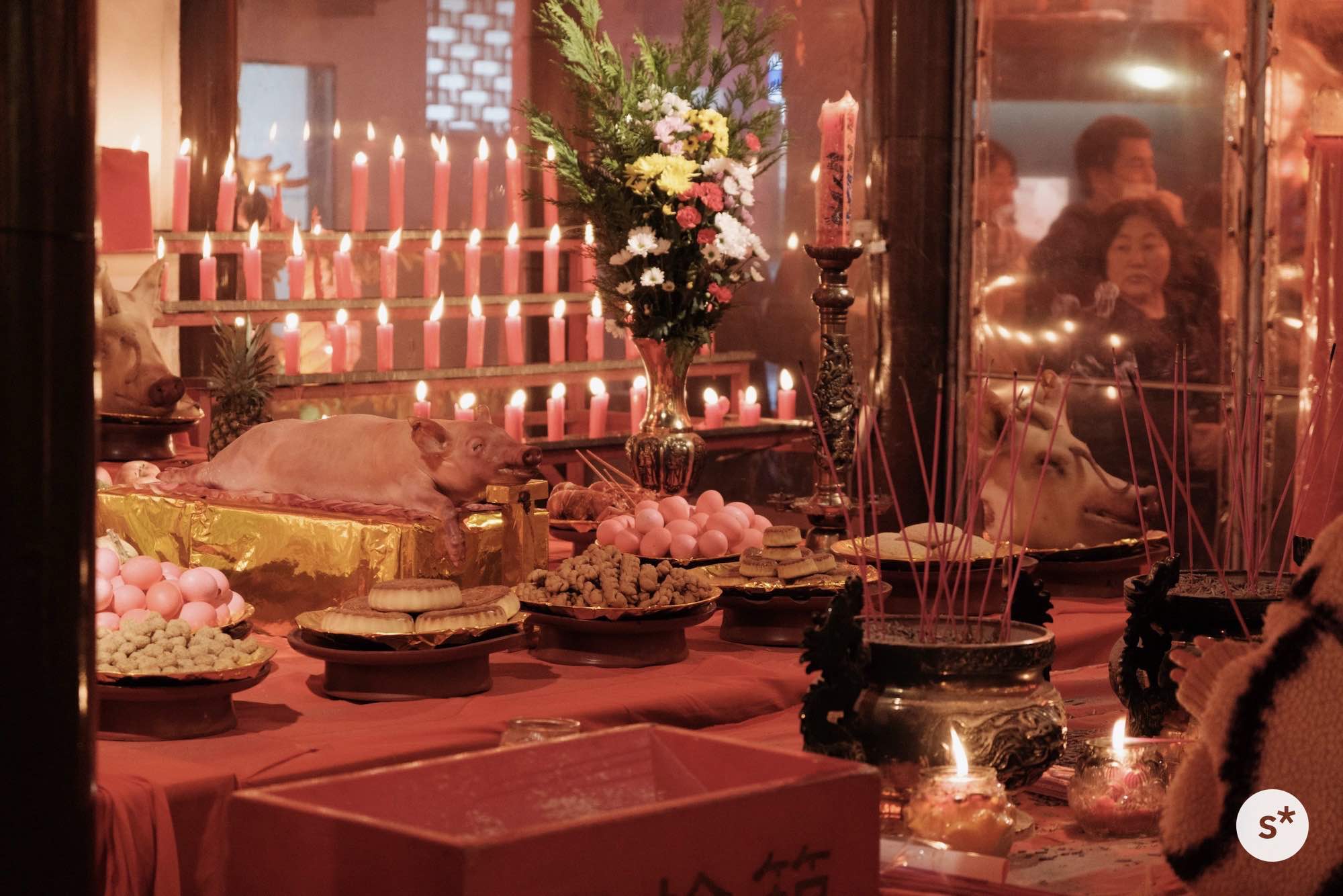 会場内にはいくつものランタンやオブジェ、そして中国式のお供え物(豚さんは本物です)もあり、中華街発祥のイベントということもありかなり本格的。出店もたくさん出ていてお腹を満たすこともできます。