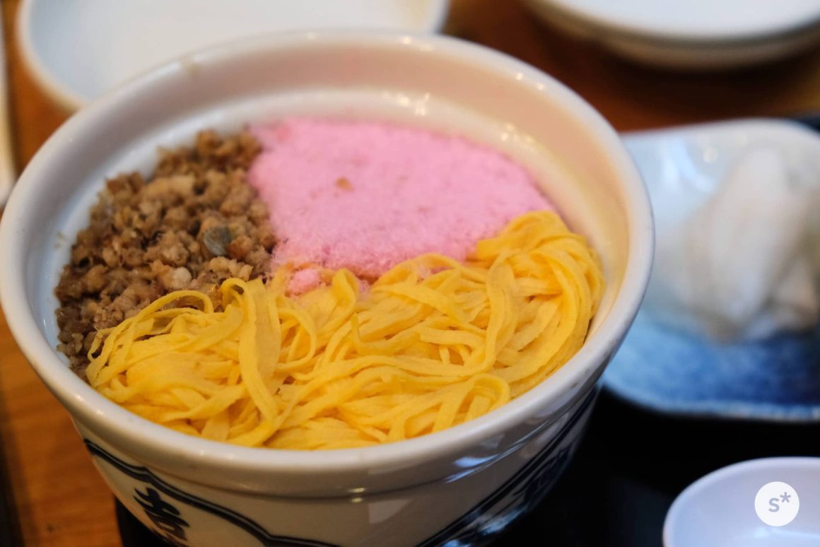 茶碗蒸しと聞いて想像するようなよくある小さな茶碗ではなく、むしろどんぶりと呼んだ方がいいんじゃないかと思える大きさ。蒸し寿司と茶碗蒸しのセットで1,375円と、老舗にしては庶民にも優しい価格。出前もやっているので、子どもの頃はよく家で食べたものです。