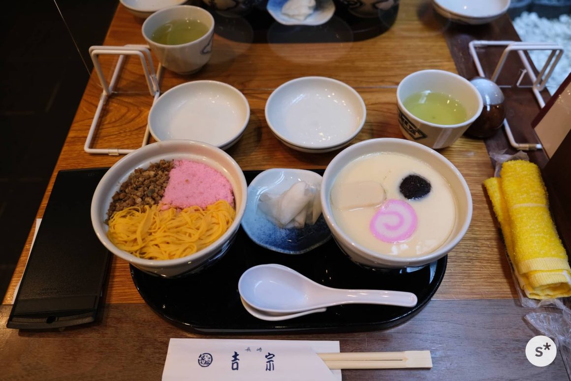 穴子、海老、鶏肉、しいたけ、きくらげ、銀杏、たけのこ、蒲鉾、麩などの具が入っており、伝統の味がそのまま受け継がれているそうです。長崎観光でのご飯は中華やトルコライスになりがちですが、吉宗の茶碗蒸しも大変おすすめ。