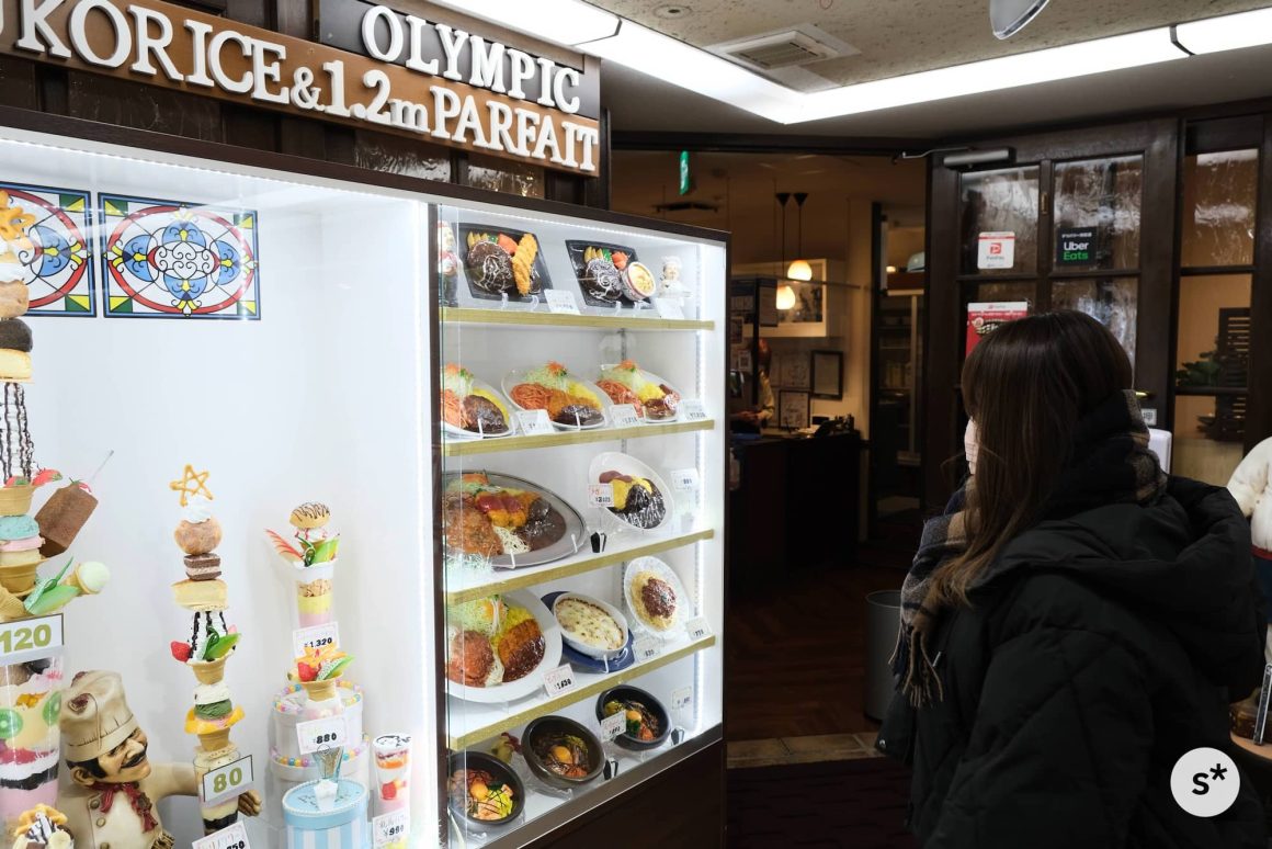 僕らは、カンデオホテルズからほど近い浜町アーケード内にある「カフェ・オリンピック」にやってきました。お昼時なので混んでるかなーと思っていましたが、珍しく空いてました。トルコライスの他にも、高さ1.2mのパフェも有名です。
