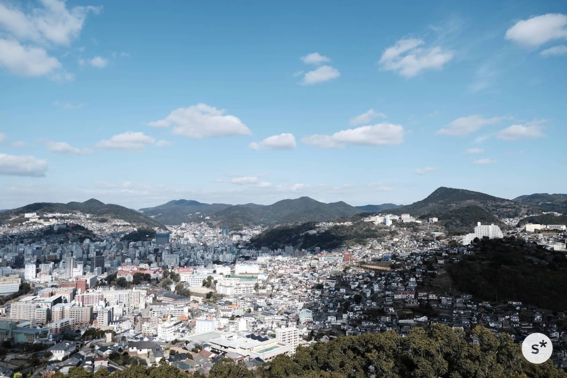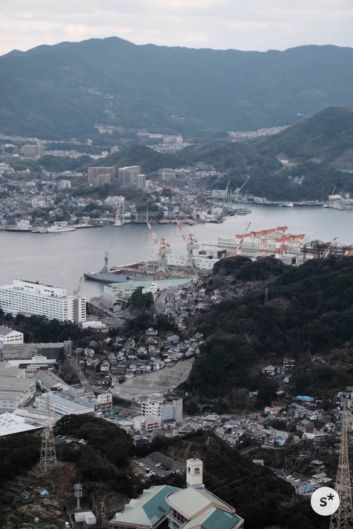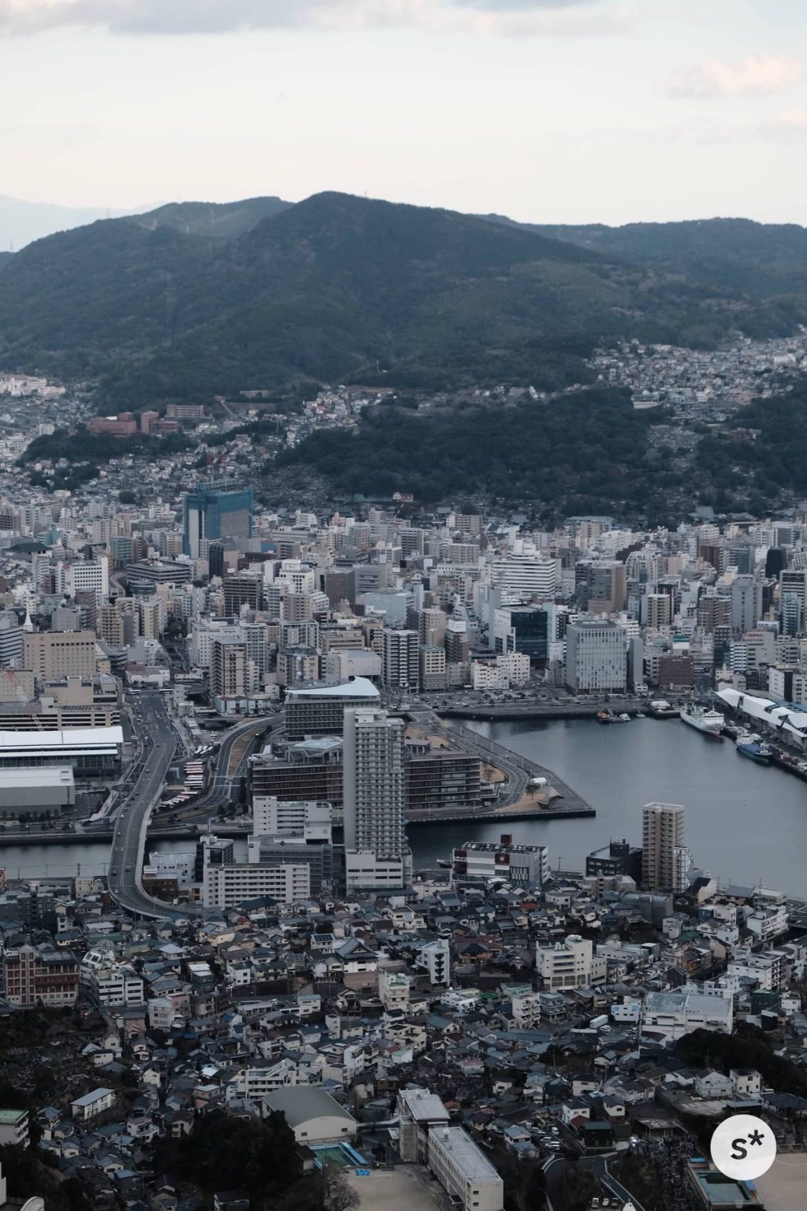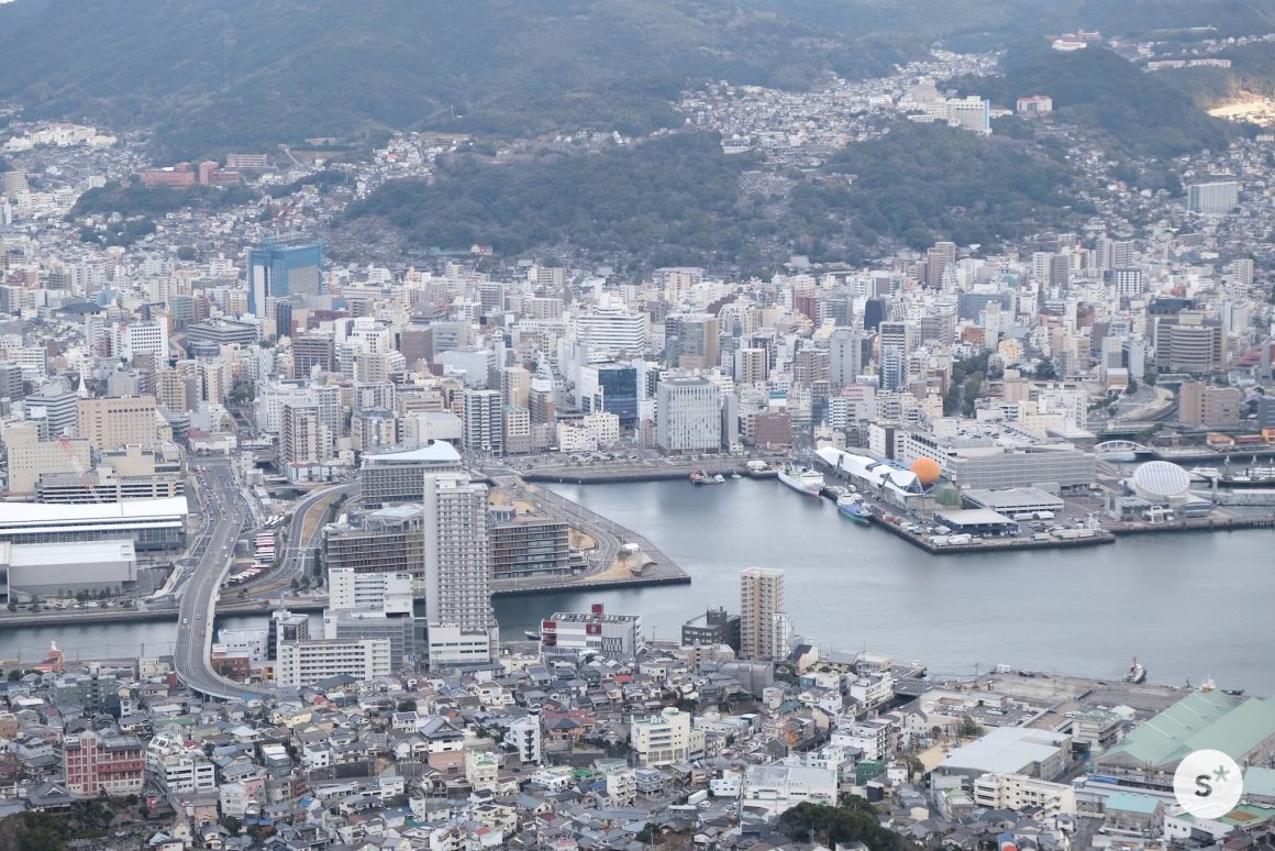 また、長崎が山の上まで住宅街が広がる特殊な街だということも、ここからの景色を印象付ける一因となっていて。リアス式海岸の一部分なので平地がほとんどなく、大半は山の斜面を切り開いて街が形成されています。