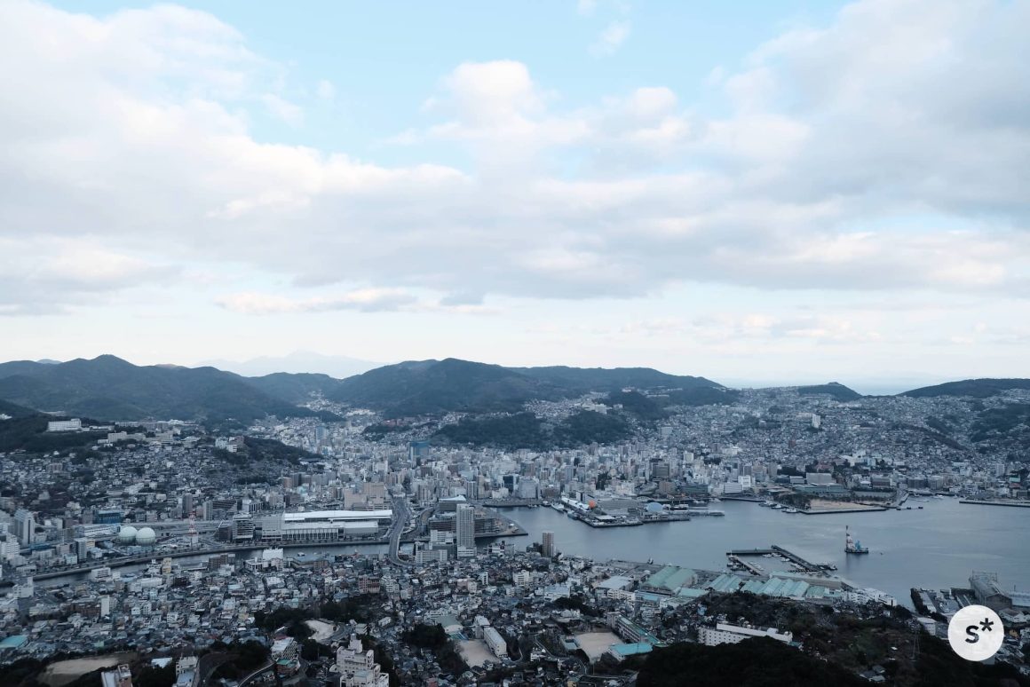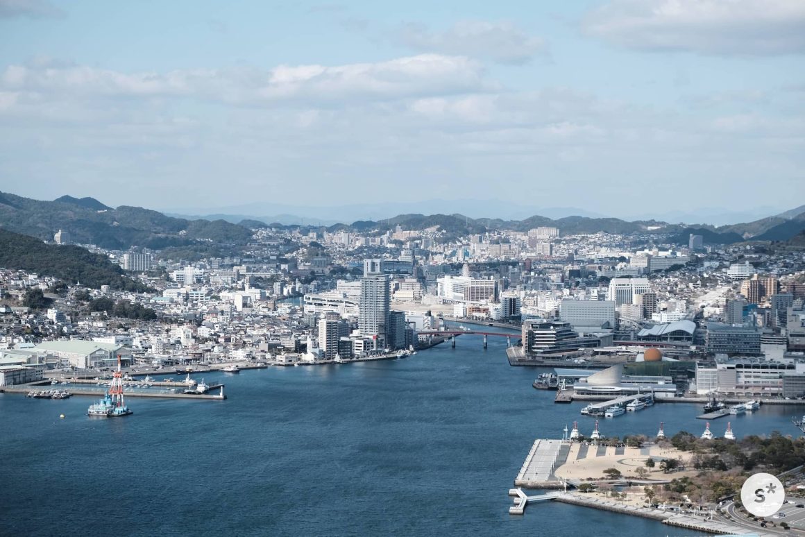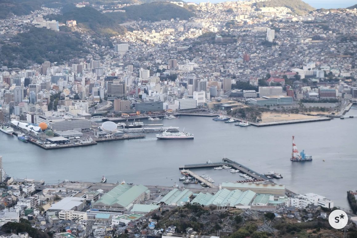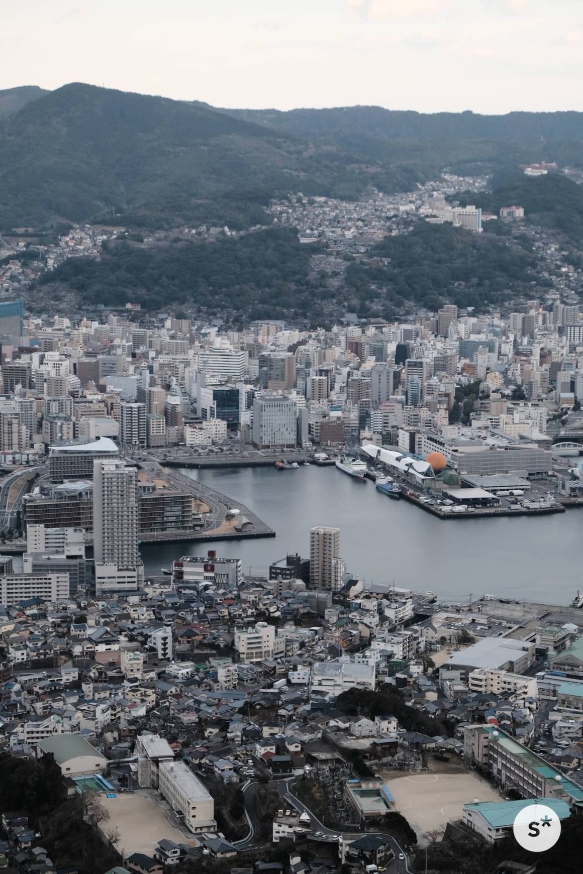 また、長崎が山の上まで住宅街が広がる特殊な街だということも、ここからの景色を印象付ける一因となっていて。リアス式海岸の一部分なので平地がほとんどなく、大半は山の斜面を切り開いて街が形成されています。