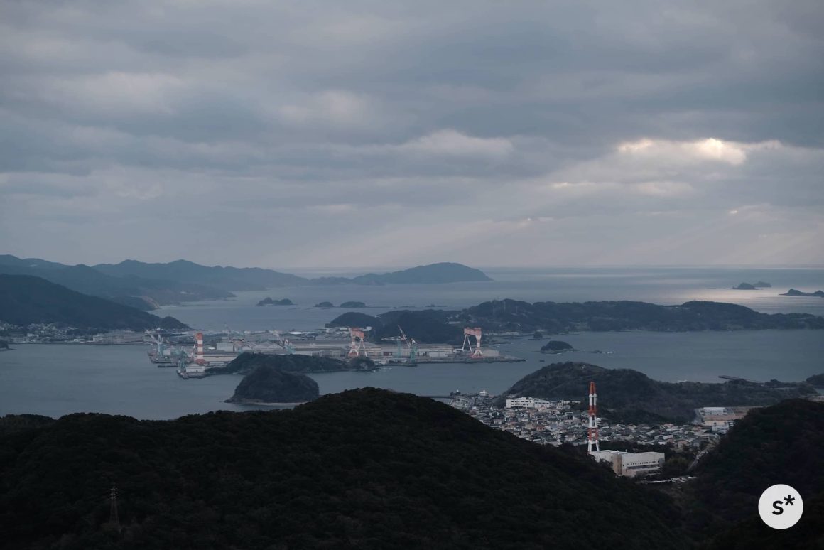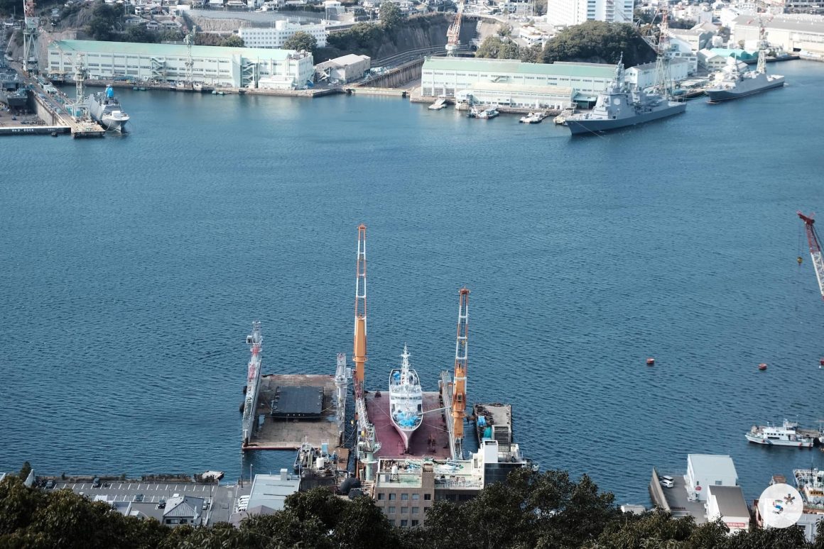 この展望台に立つと、長崎の入り江の深さがよく分かります。これが天然の堤防となり、穏やかな海で貿易や造船が栄えた歴史にも頷けます。でも、時代の流れで造船は廃れてきており、三菱重工の大きな造船所は売却が決まってしまいました……