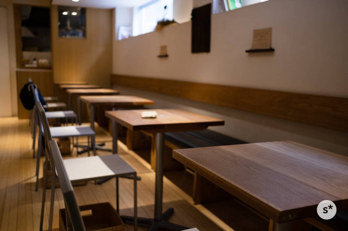 訪れた日は9時開店だったのですが、20分ほど前に着いてしまったので、お店の前で待ちます(8時開店だと思ってた)。お店は2階建てで、1階に厨房とショーケース、2階にカフェスペースがあります。