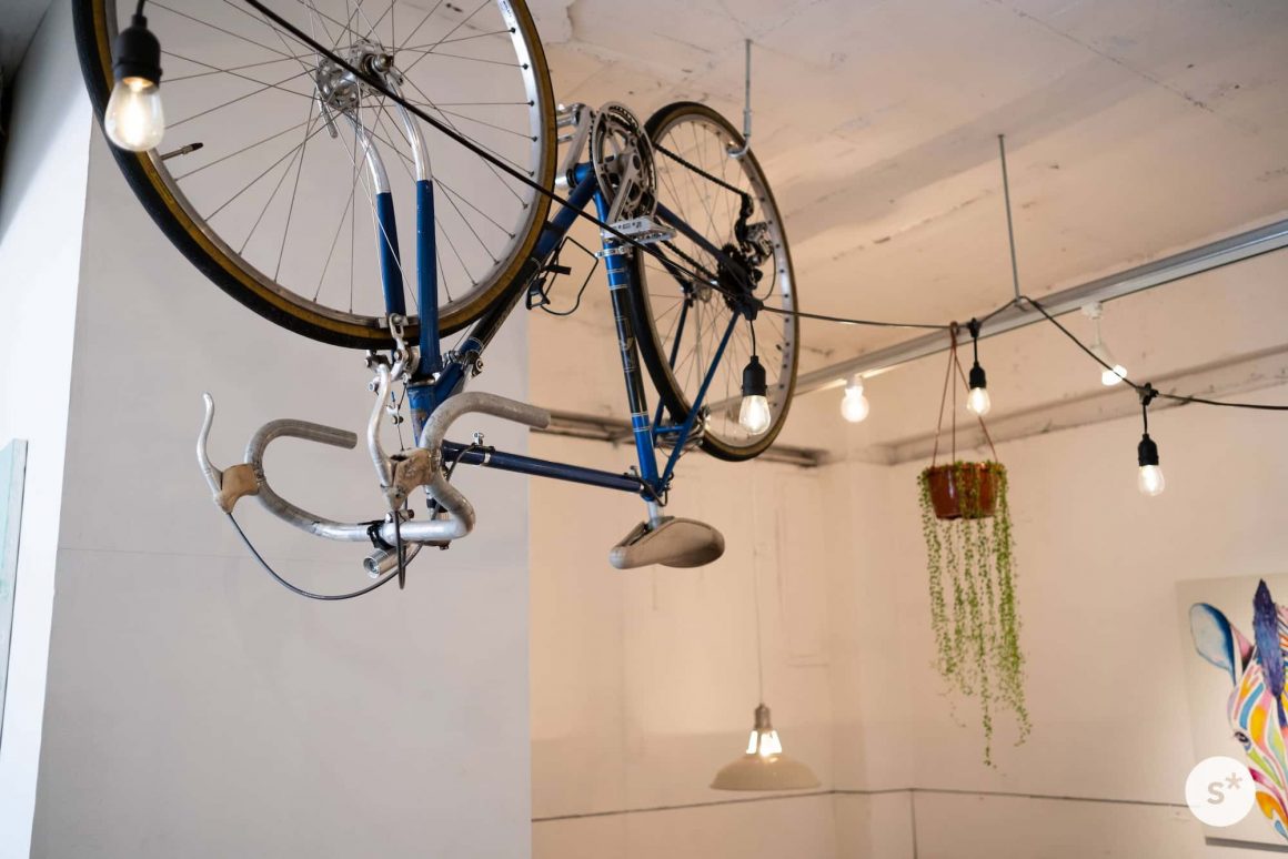 1階で注文したあと、2階の席で待ちます。店内には自転車がぶら下がっていたり、七夕の時期だからか短冊が飾られていたりと、これだけでも「いいカフェ」だということが伝わってくる雰囲気。