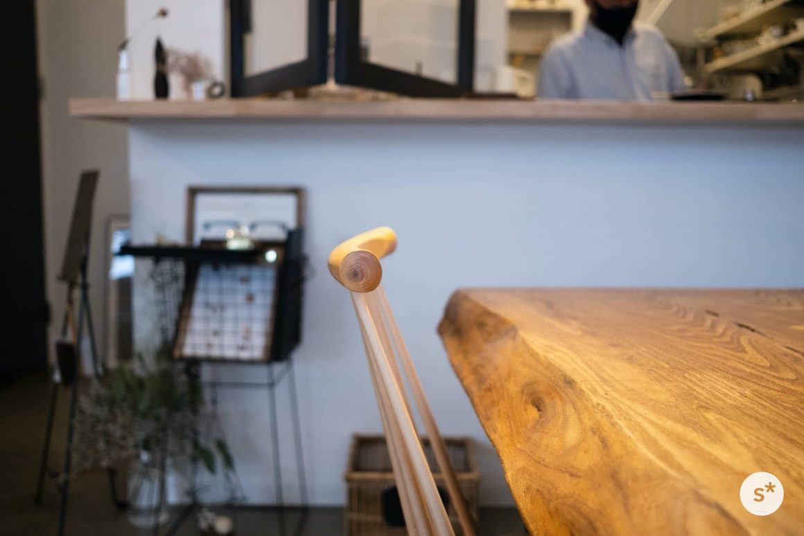 素敵なインテリアショップが手がけるカフェで、買って帰りたくなるようなテーブルやイスがたくさん。
