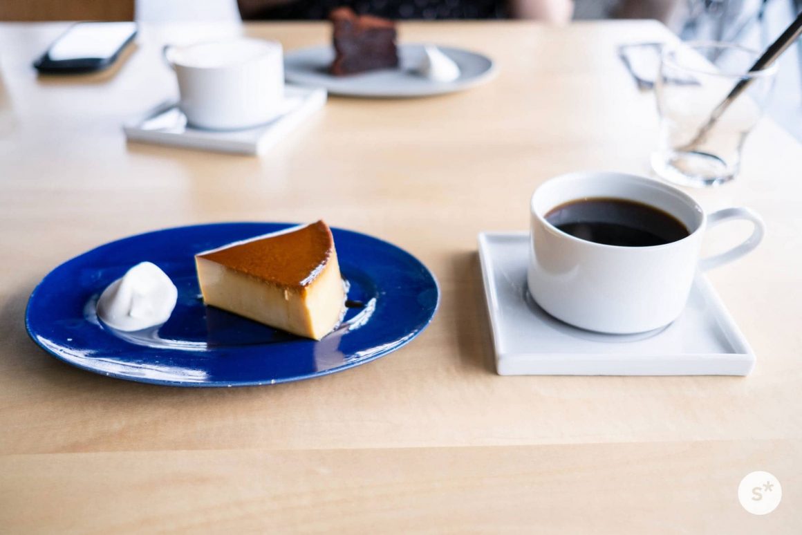 プリンは固めで甘さ控えめで、好きな感じです。添えられているホイップクリームをつけて、甘さを調整できます。また、コーヒーは深煎りというだけあって、濃いめの味。これも好きな感じでした。