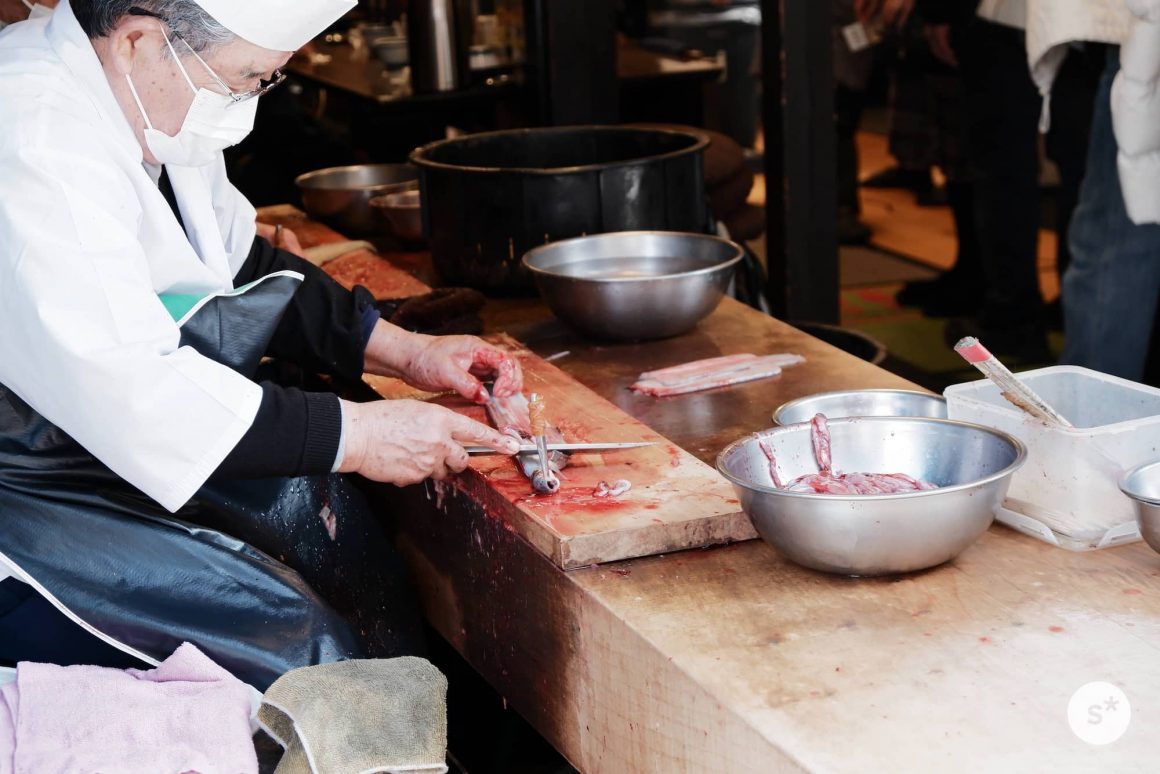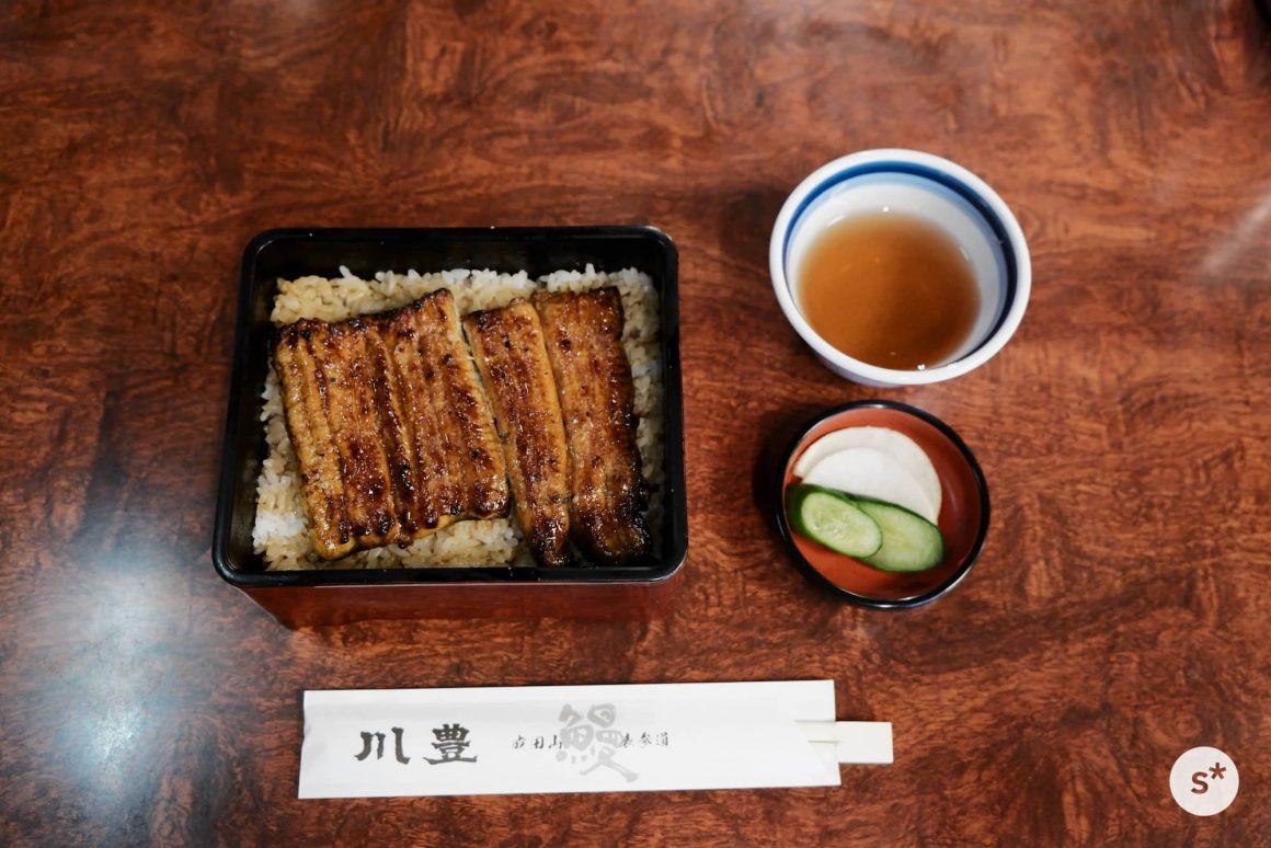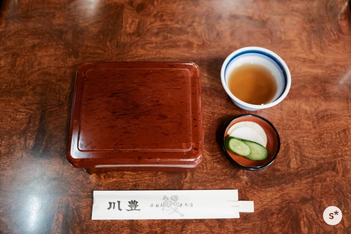 さて、お腹も空いてきたのでお昼はうなぎを食べましょう。やってきたのは「川豊」さんです。実はさっき表参道を歩いていたときに番号札を貰っていました。1911年に建てられたお店は、2019年に登録有形文化財に指定されたとのこと。はしごのように急な階段を上って2階に行き、うな重(2,700円・税込)を頂きました。