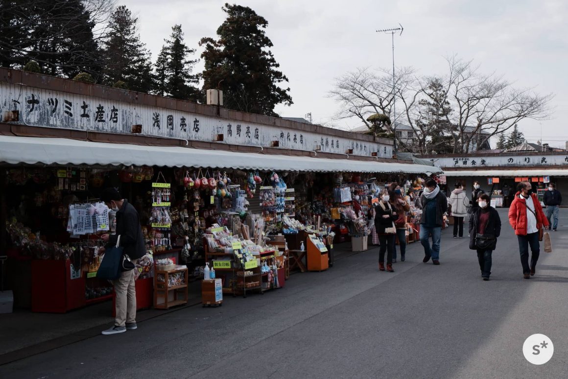 歩き疲れてきたので、駐車場へとつながる裏門へ。途中で奥山広場という広場を通りましたが、現代ではあまり見かけないような商店街がありました。あたりに漂う昭和の香り、味があっていいなあ。