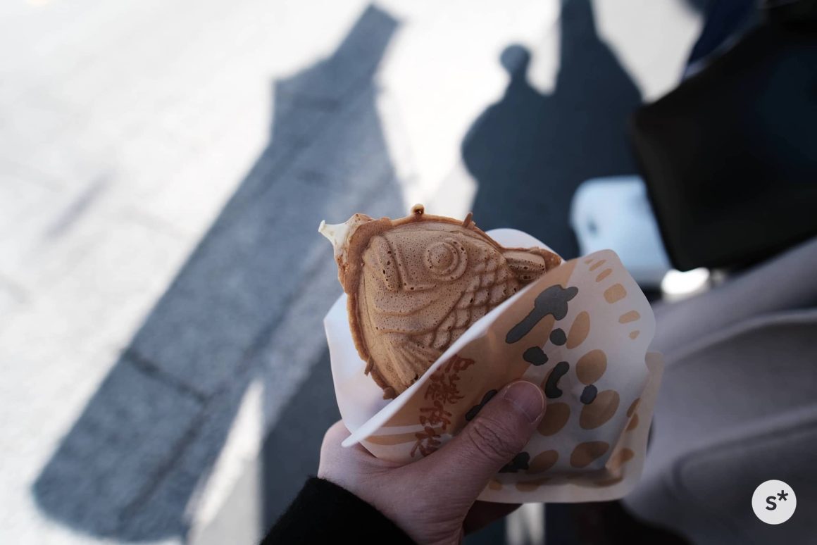 お腹が減っている中たいやき屋さんを見つけてしまい、カスタードたい焼きを買ってしまいました…。おいしかった。