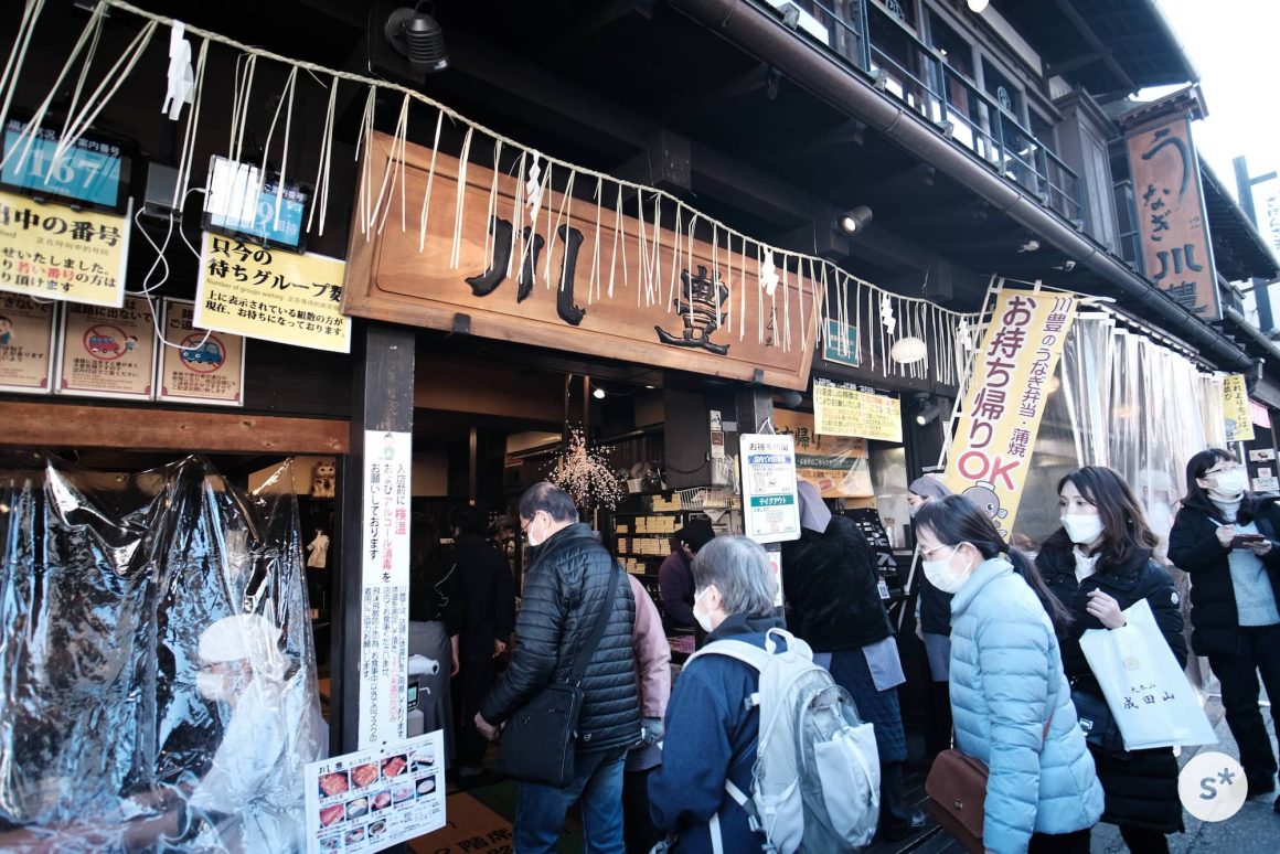 早速新勝寺を参拝といきたいところですが、その前に参道にあるうなぎの老舗「川豊」さんの整理券を貰いに行きます。