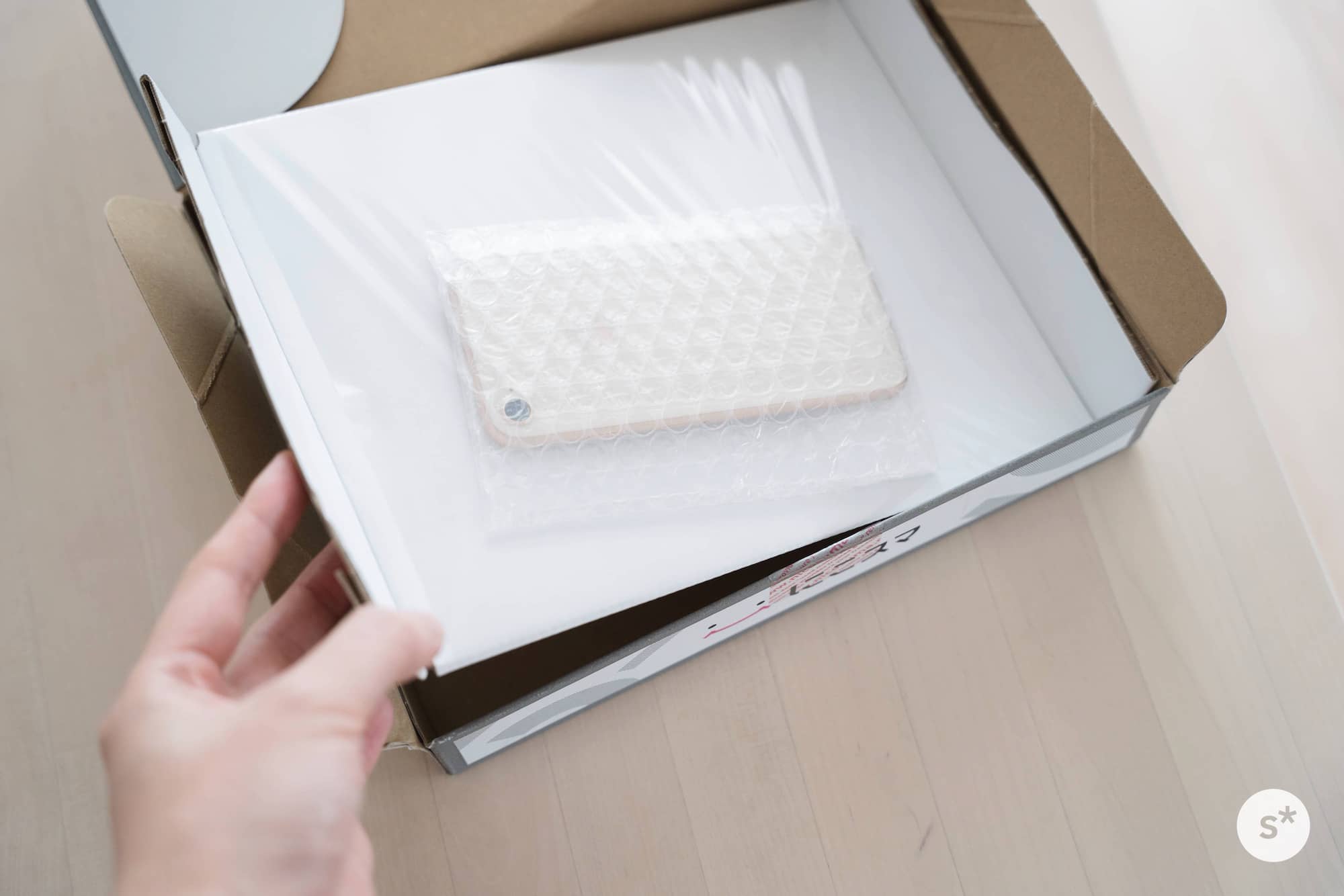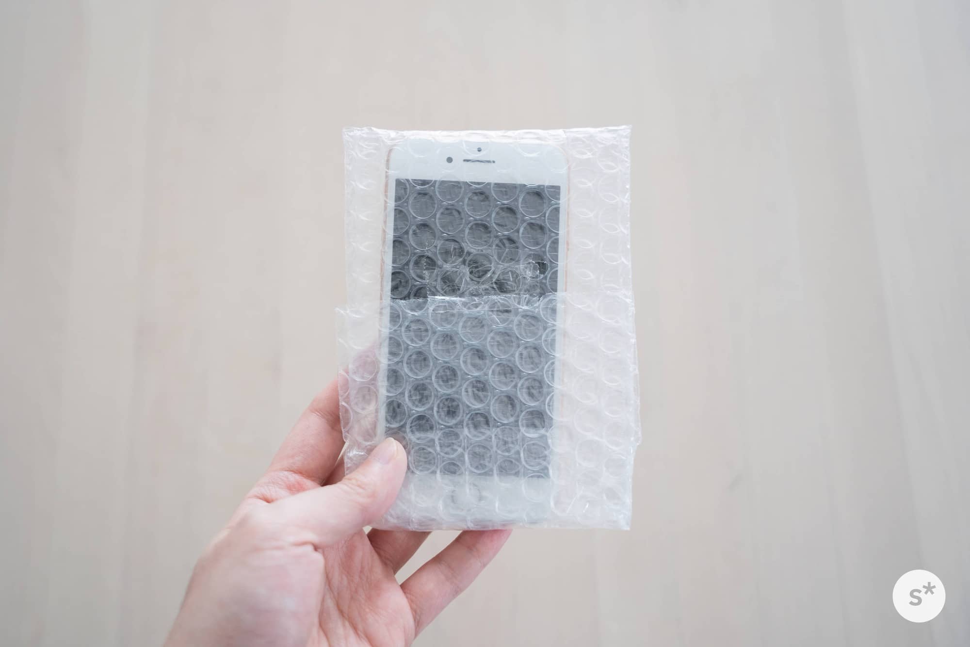 ここからは、実際に「にこスマ」さんに送っていただいた iPhone 8 をご紹介します。梱包や端末の状態に着目してみてください。