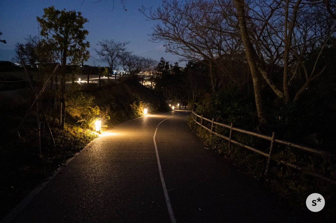 駐車場からは少し歩きますが、夜でもこんな風に照らされているので全然怖くないです。