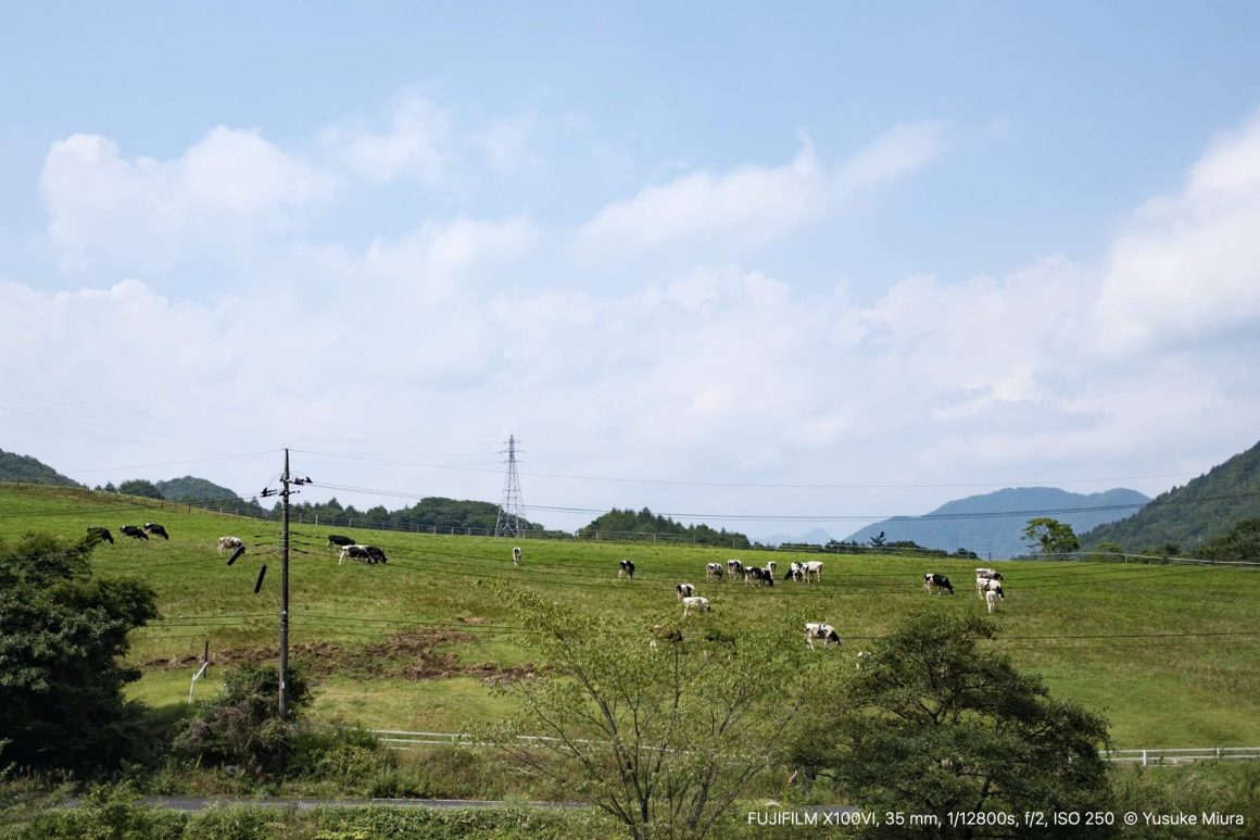車を降りて最初に飛び込んできた景色は、広大な草原の中で牛さんたちが放牧されている様子。この大笹牧場、広大すぎるから牛さんたちが近くに来ている場面、あまりないんです。それなのに、目の前にこんなにたくさん。