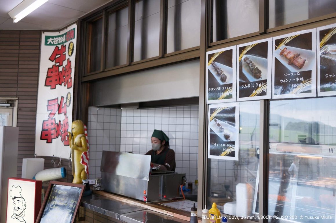 この大笹牧場の名物はソフトクリームだけではありません——というのを、今回初めて知りました。ソフトクリームが真ん中で売られているから、その隣で売られているものを気にしたことなかったんだけど、実は牛串焼が名物だそうで。