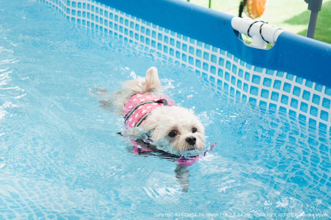 昨年に引き続き、子犬期にお世話になったしつけ教室のプールイベントに行ったのでした。うちの犬は泳ぐのが得意みたいで、楽しそうにすいすいと泳いでいました。こういうときにはズームできるコンデジが役に立つからRX100Vを持って行ったけど、昼間だとほんときれいに撮れますね。