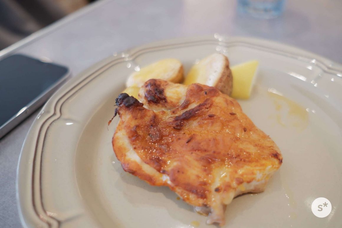 また、ケイジャンタンドリーチキンは辛くないものでした。お好みでレモンを搾っていただきます。付け合わせでポテトが付いてきました。どっちもおいしい。