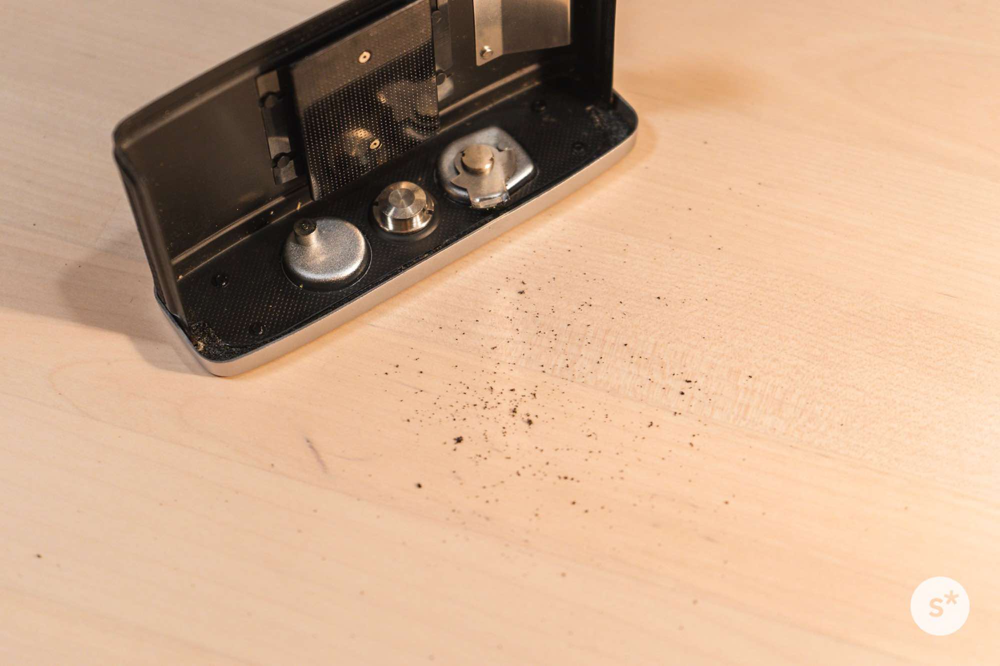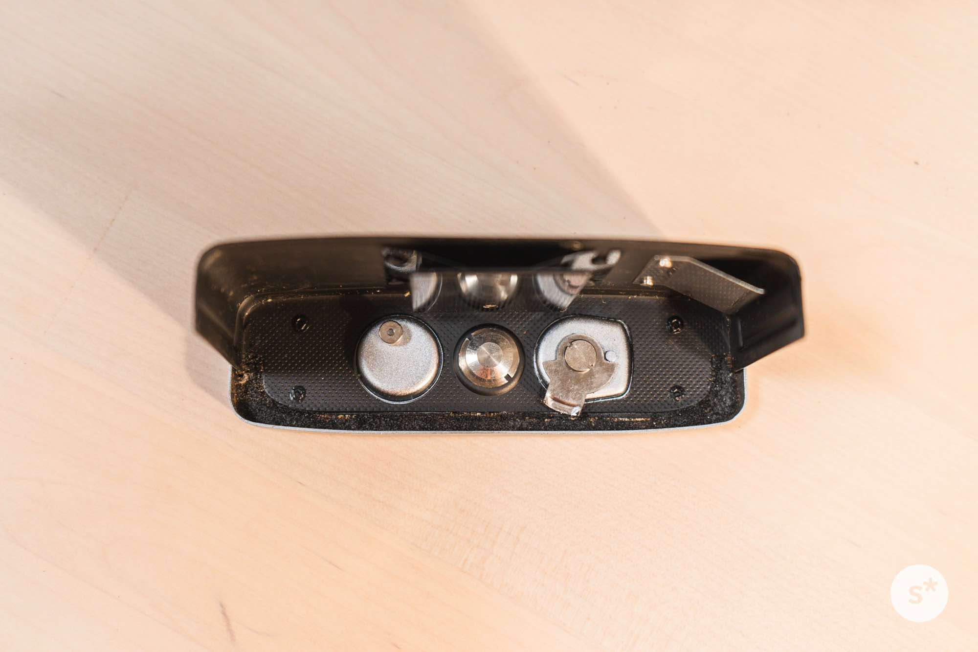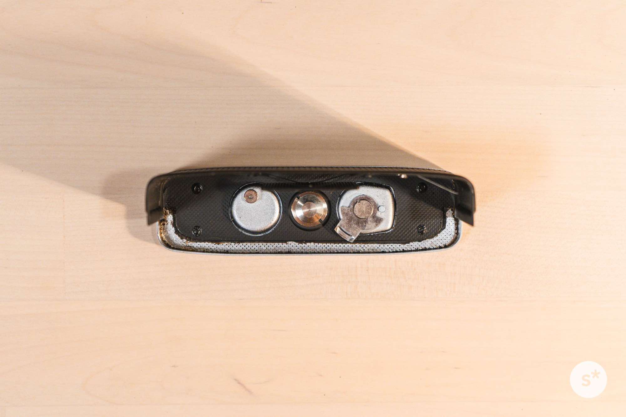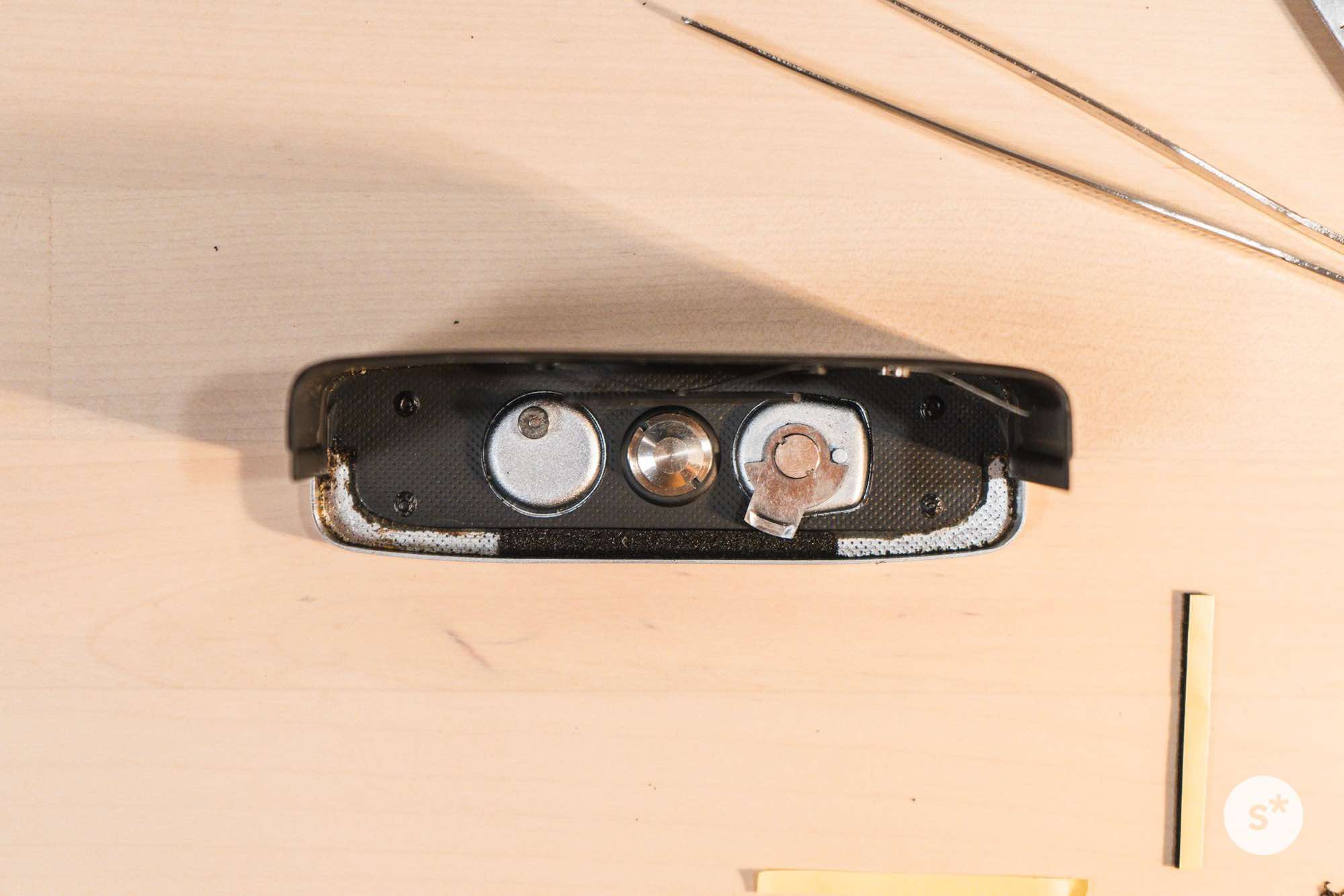 劣化していたのは、フィルム室内に光が漏れ入るのを防止する「モルト」という部品。その実体は厚さ1〜2mmの黒いスポンジなのですが、スポンジであるが故に経年劣化でボロボロになってしまうのです。