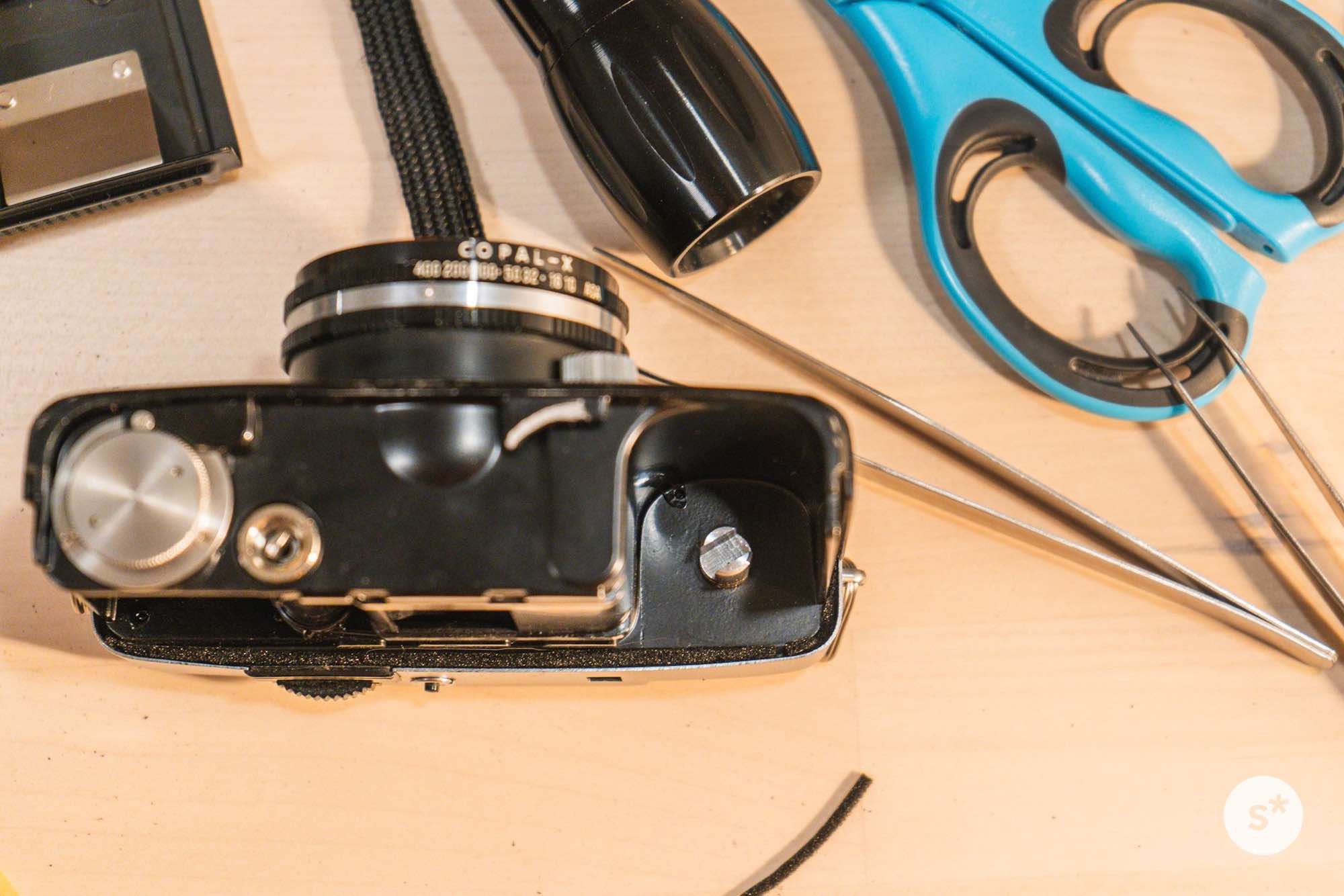 このカメラはフィルム室部分がフタになっていて取り外すことができます。早速セットしてみましょう。