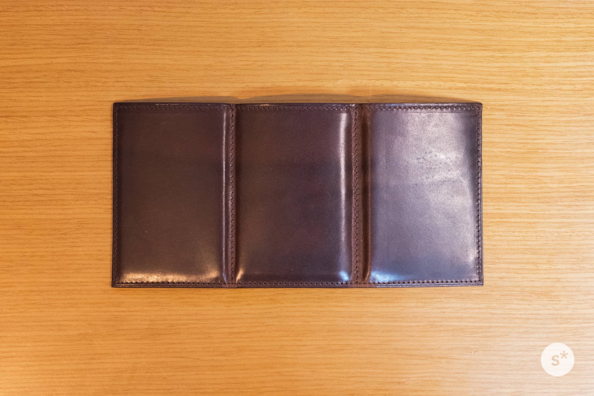 まだ革が伸びきっていないので、左ポケットは若干キツいです。しばらくは免許証を1枚だけ入れることになりそう。