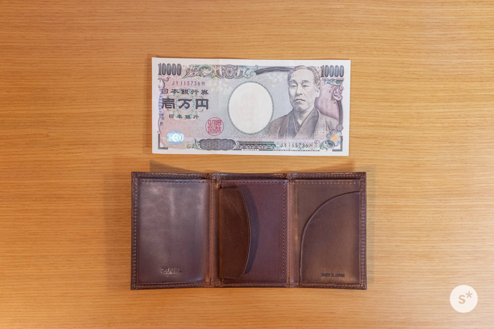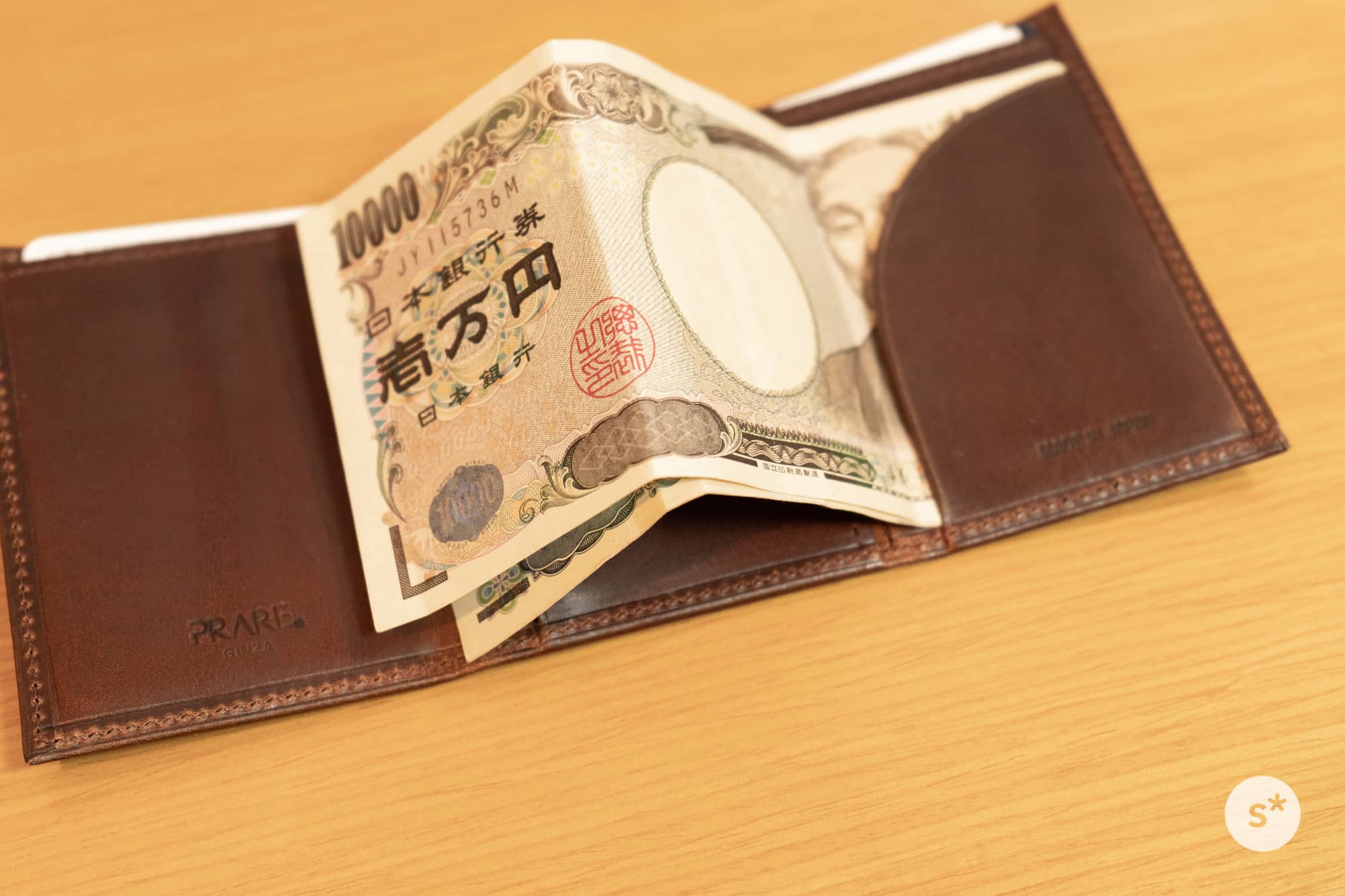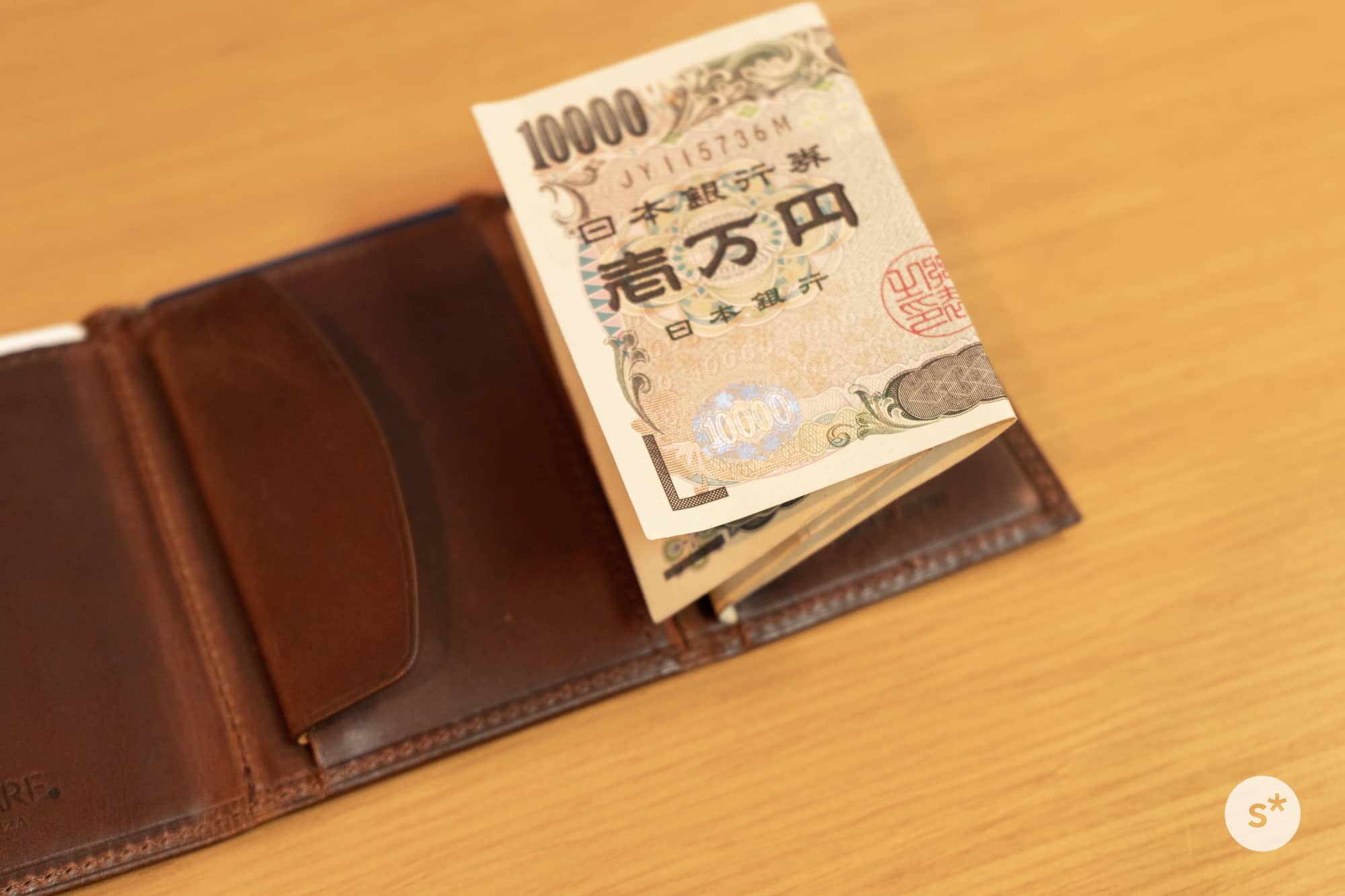 とりあえず手元にあった2枚だけ入れてます(一万円札+千円札)。紙幣の折り曲げ方はトバログを参考にしました。