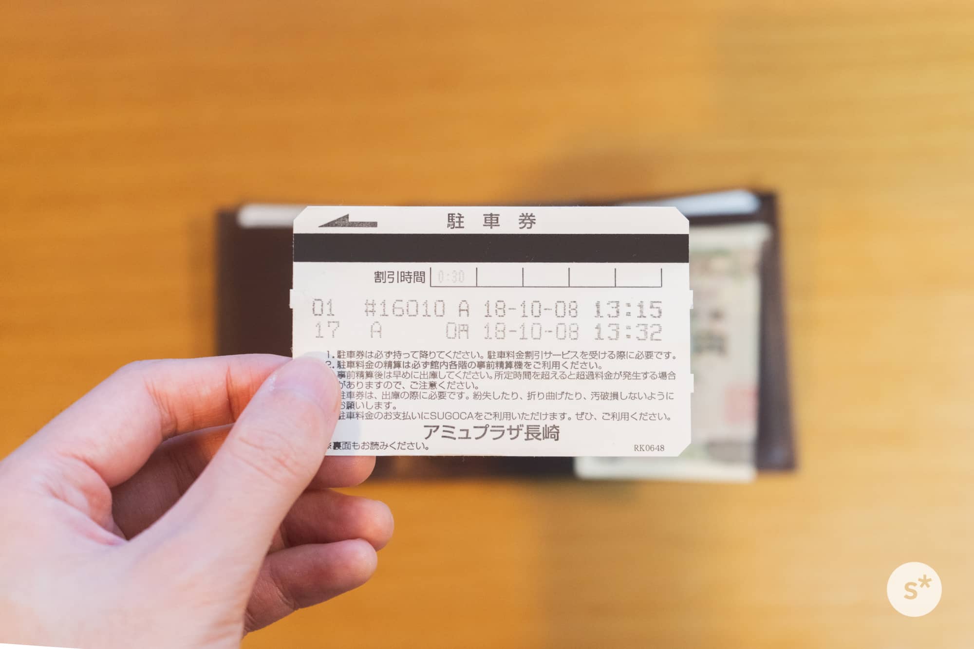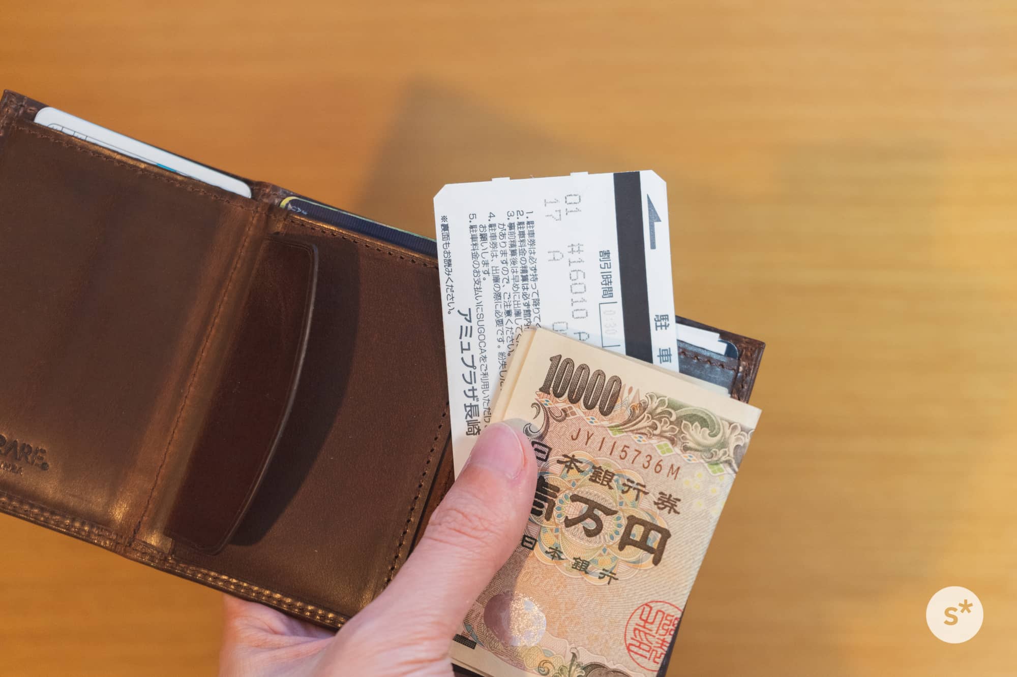駐車券を例に取ると、写真のようにお札の後ろに滑り込ませておくといいです。