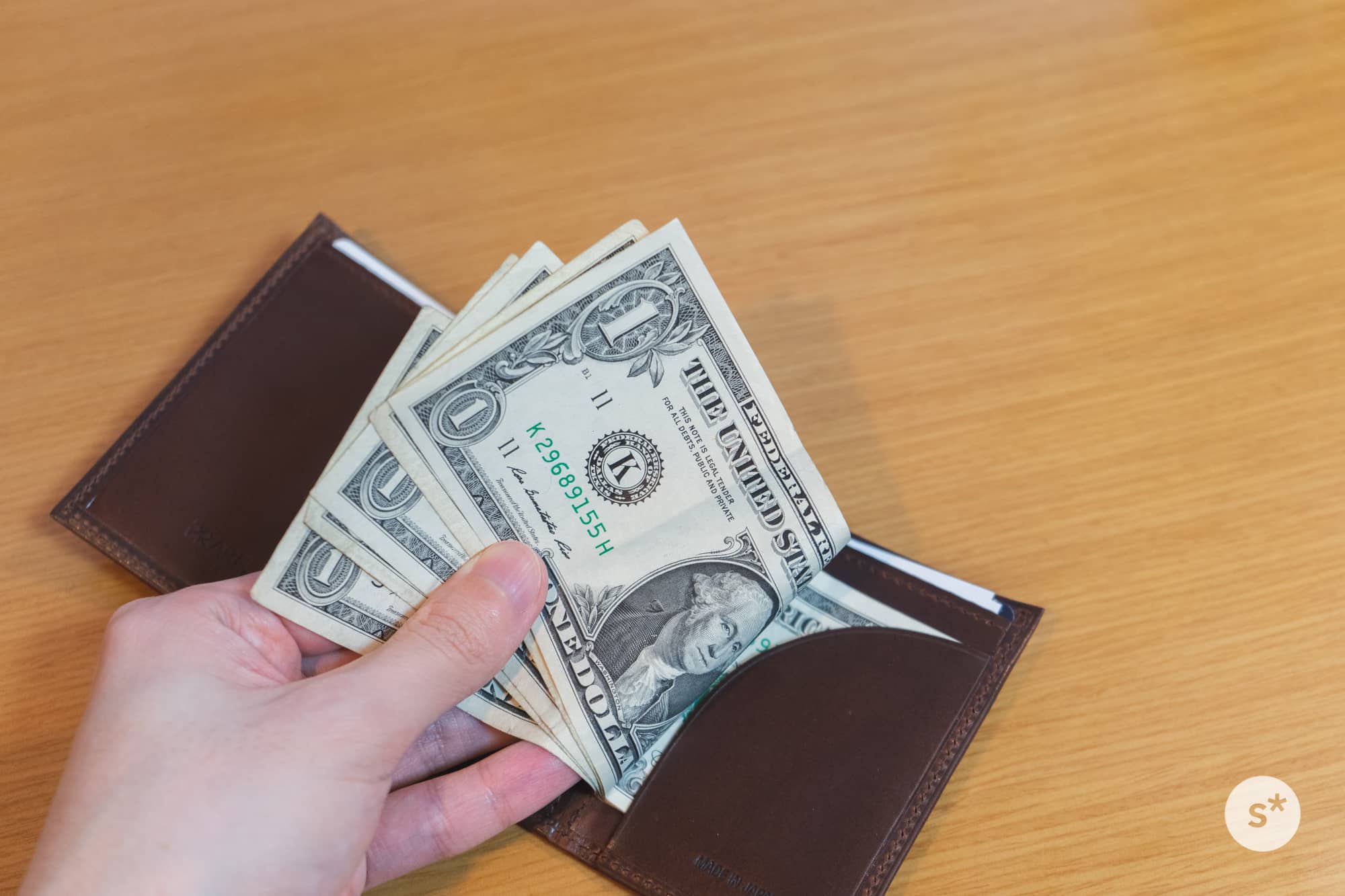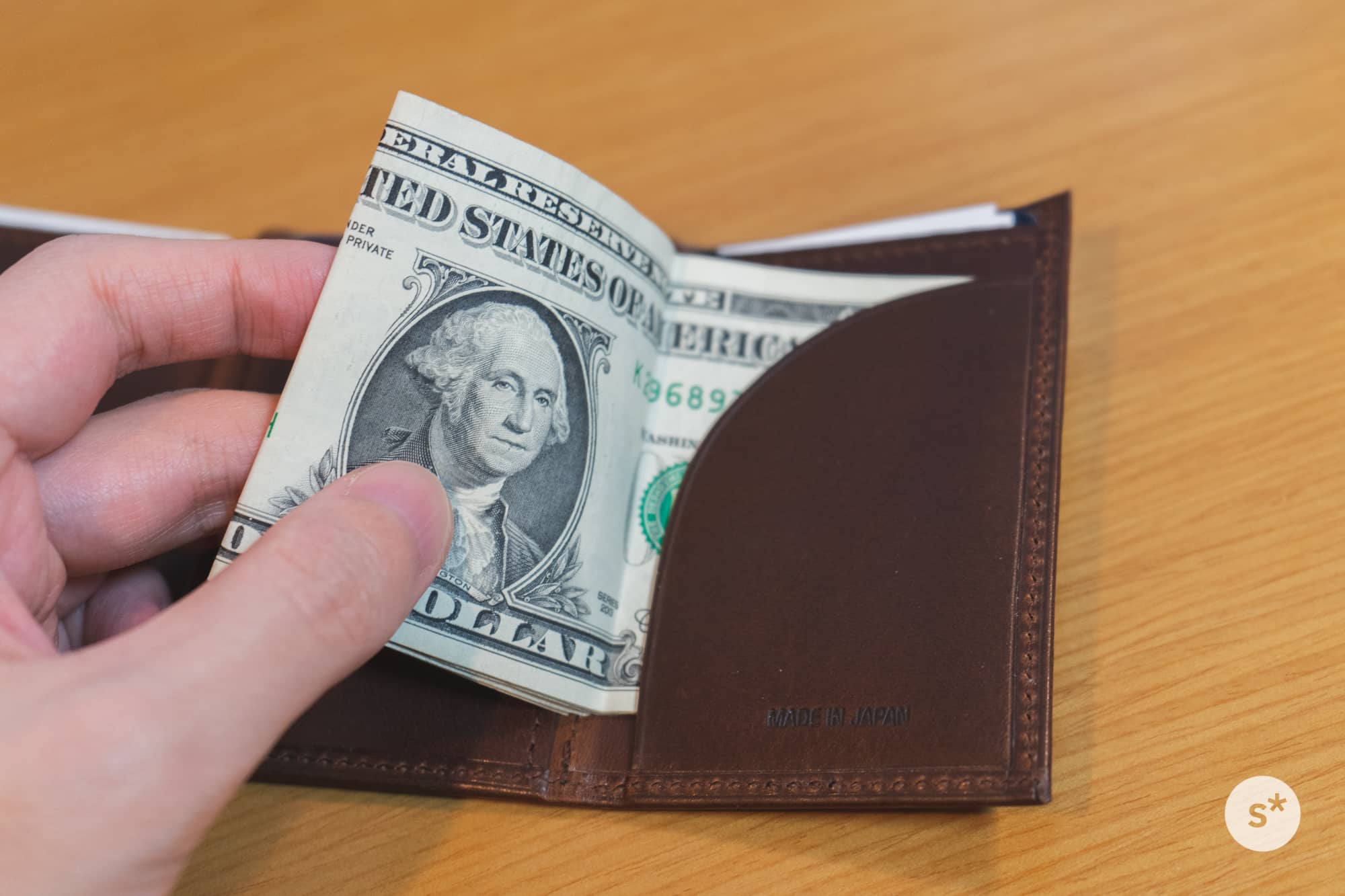 日本円が手元になくて恐縮ですが、1ドル札を5枚入れても全然大丈夫でした。まだ余裕があるのでもう少し入りそうです。