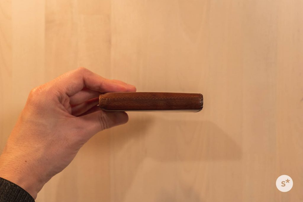 「キャッシュレス時代の理想の財布」をテーマに掲げ、シンプルだけど高品質な財布として登場したPRESSo。「カード6枚、紙幣数枚、小銭数枚しか入らない」というシンプルさと、「手間のかかる製法で作られた熟成レザーを使い、革素材の経年変化を楽しめる」という高品質さが両立しています。