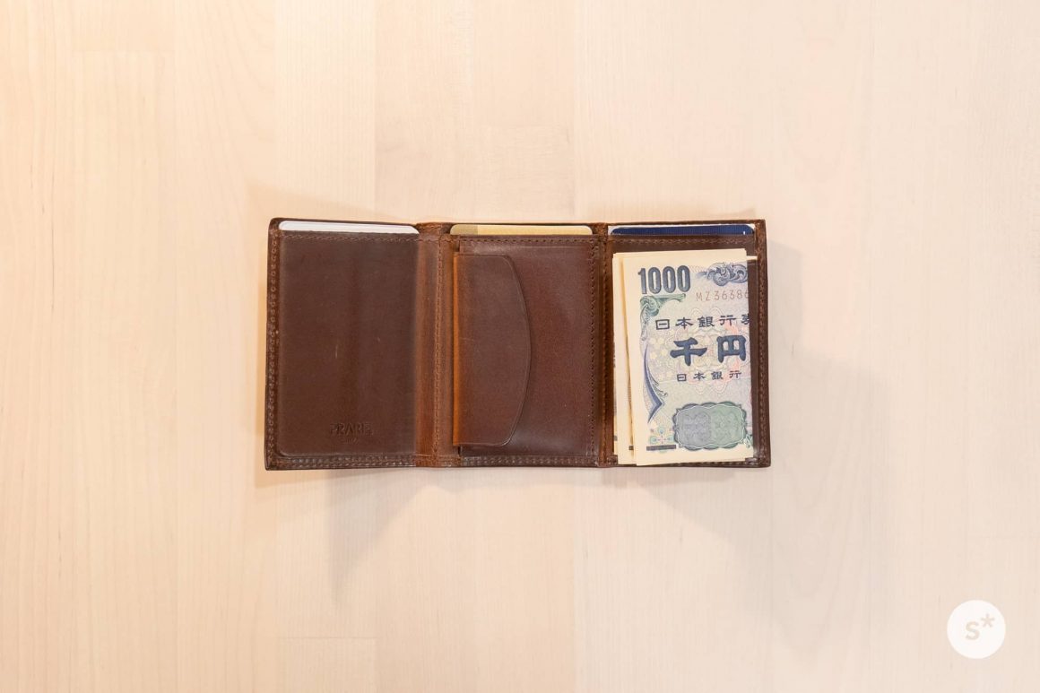 現金は5,000円くらい入れている感じです。といっても、現金が必要な店を避けるような生活をしているので、ほぼ減らないですね。
