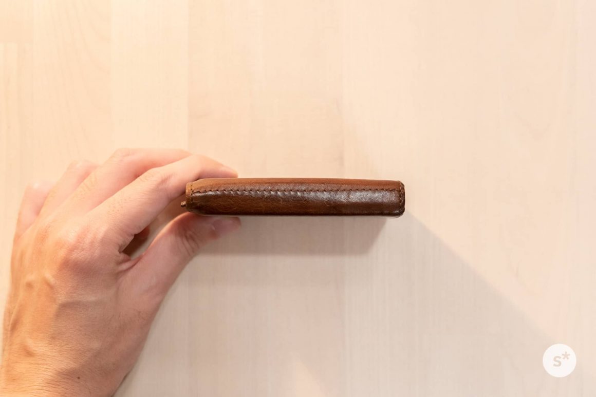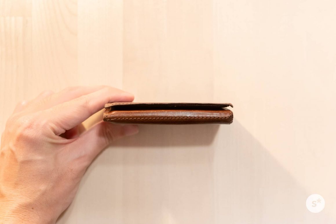 革の部分はカードによって伸びていますが、すぐそばの縫い目の部分は全くほつれていません。革だけがきれいに伸びてくれました。クオリティ高い。