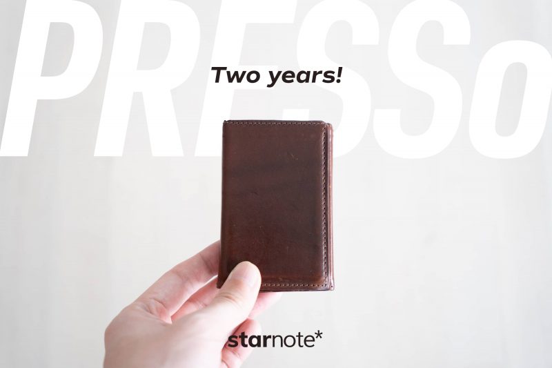 「キャッシュレス時代の理想の財布」を掲げてドリップとプレリーの協業で誕生したPRESSo(プレッソ)。クラウドファンディングで支援して、僕が手に入れたのが2018年12月です。それからちょうど2年間使ってきて、高品質な熟成レザーも経年変化で少しずつ見た目や手触りが変わってきました。