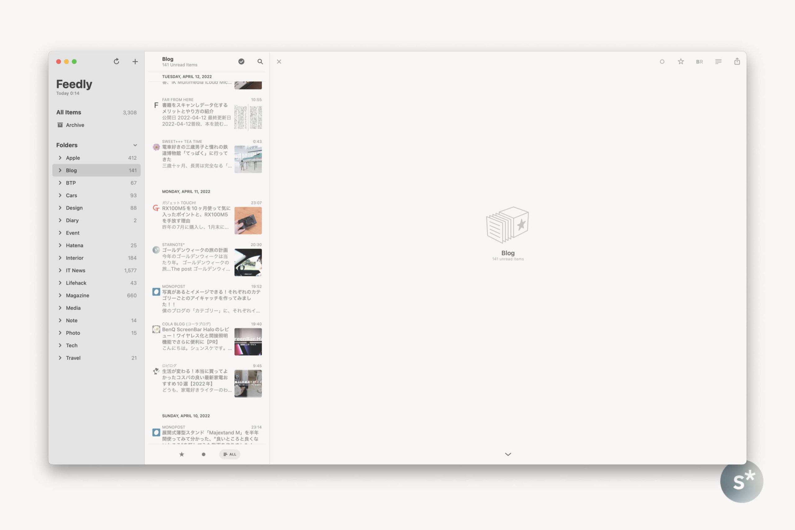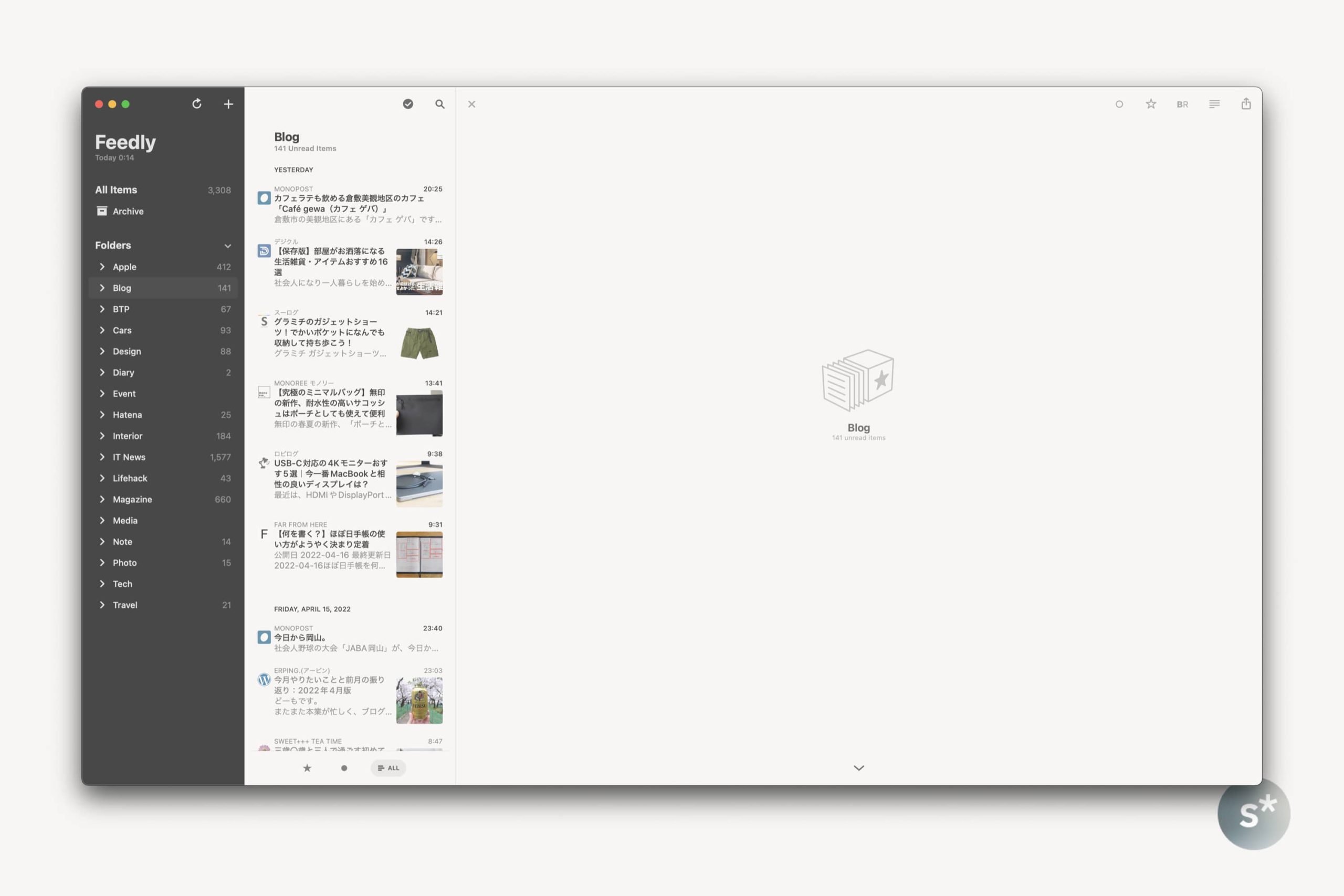 それと同時に、MacやiPhoneの中身も断捨離し、僕のスタンスも「余計なアプリは入れず、ブラウザ上で完結するものはブラウザで」となっていました。だから、RSSをチェックするときもブラウザでFeedlyにアクセスしていたんです。