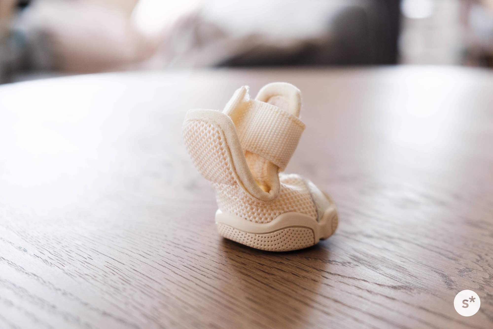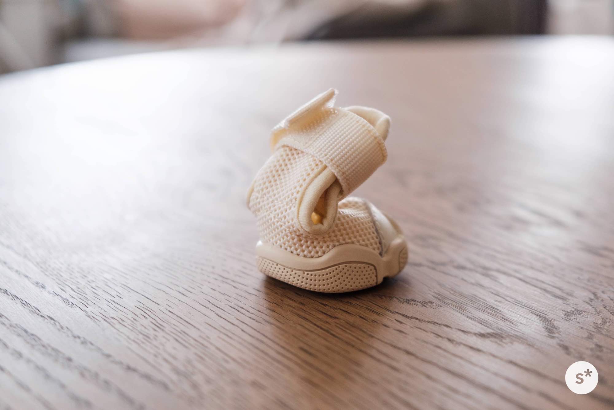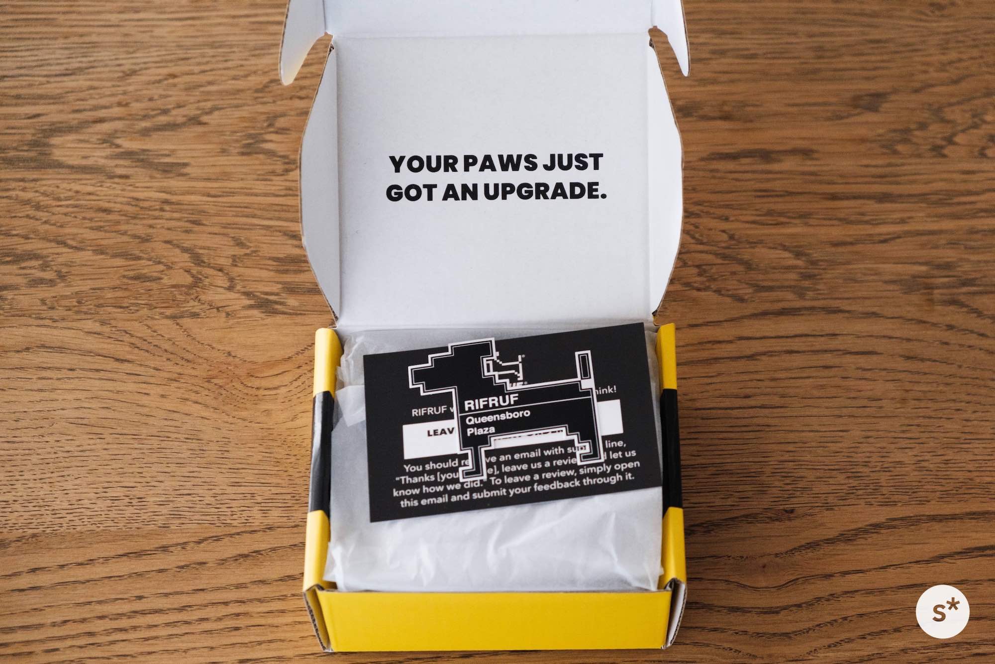 そして、購入したのが「RIFRUFドッグスニーカー」のベージュ。人間のスニーカーと同じように、薄い紙に包まれて段ボールに入っていました。なかなかおしゃれな箱ですね。