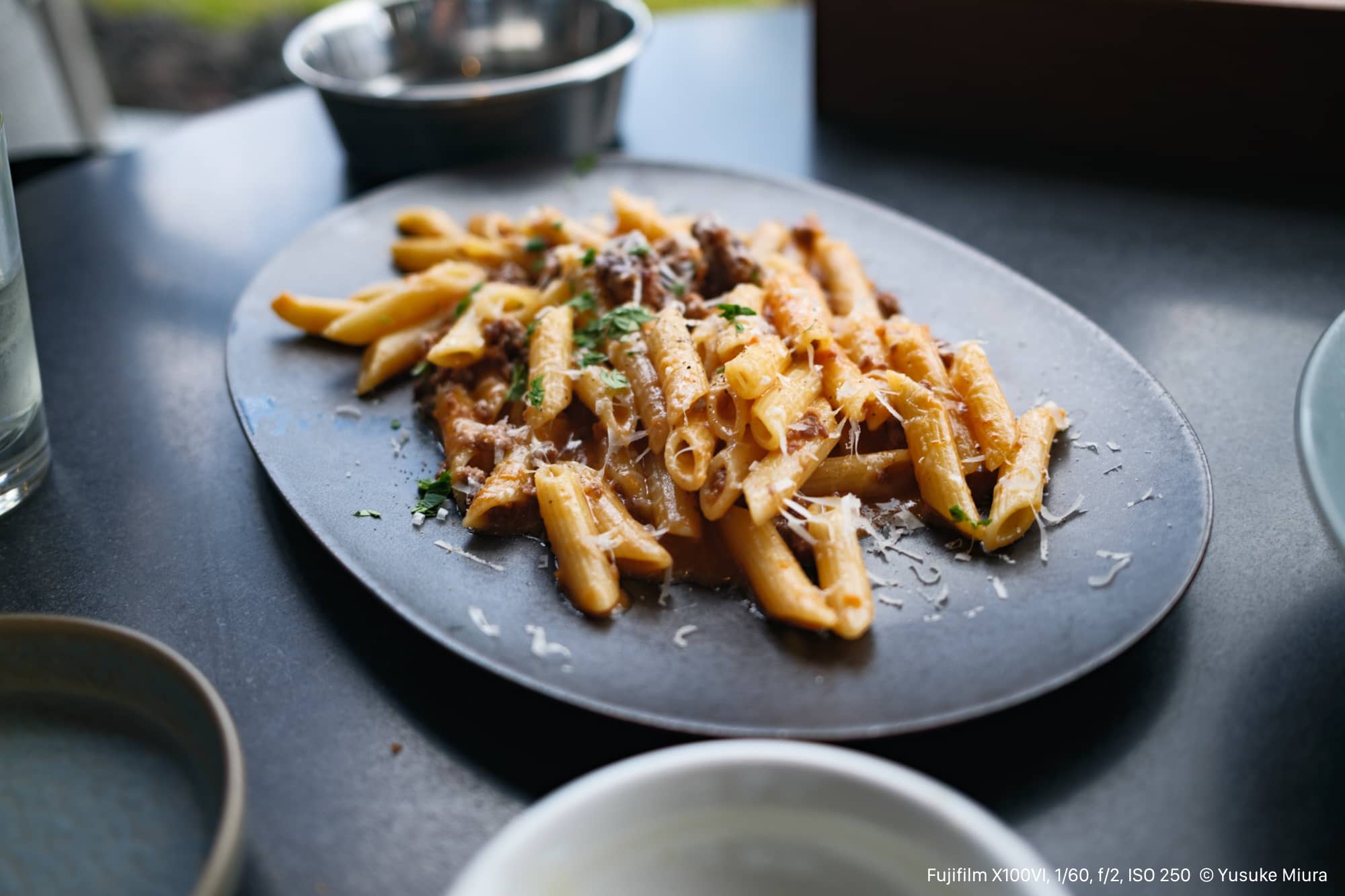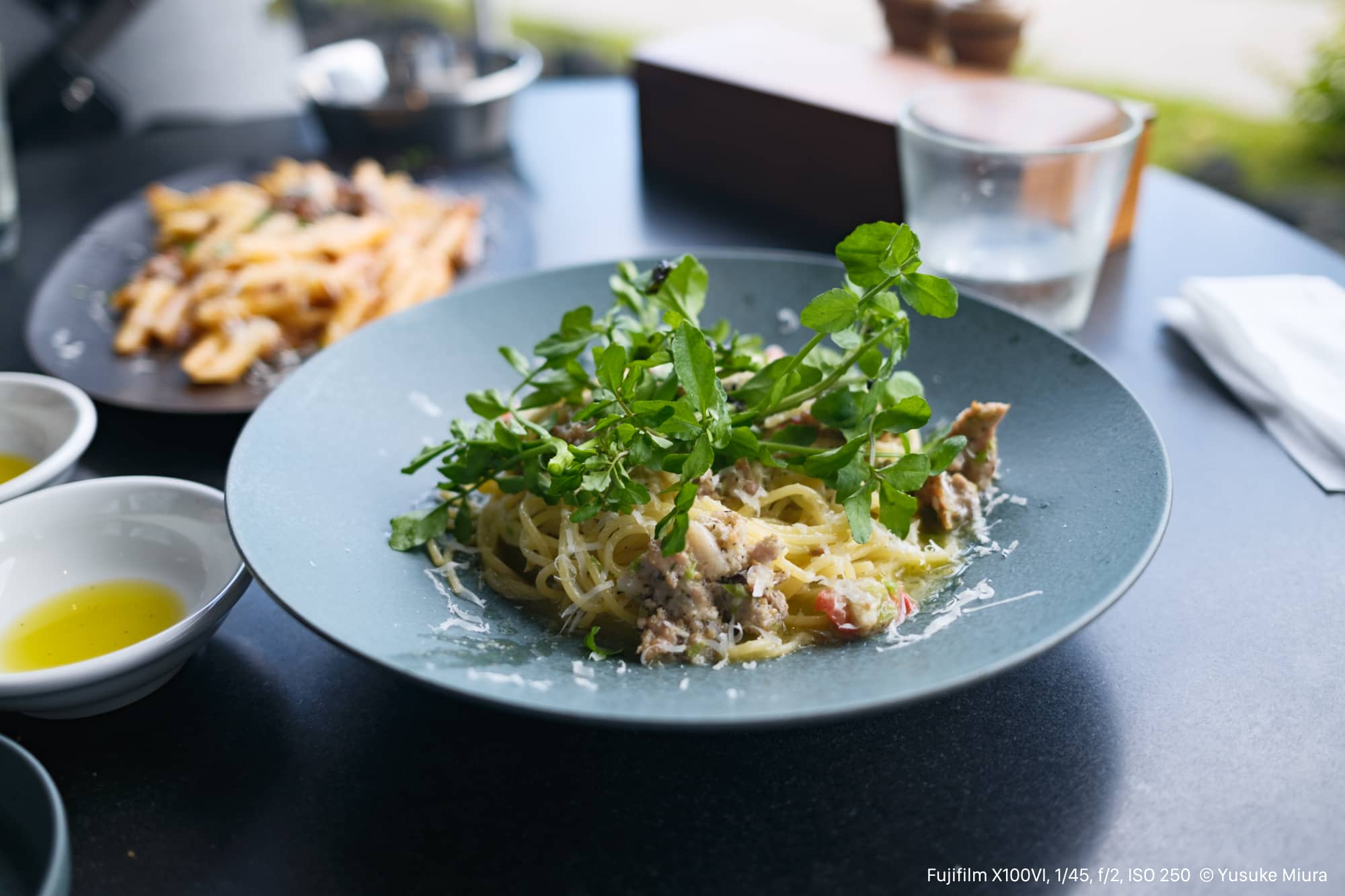 これら3種類から選ぶことができましたが、僕は「自家製サルシッチャとクレソンのスパゲッティーニ」、妻は「信州牛のペンネボロネーゼ」にしました。