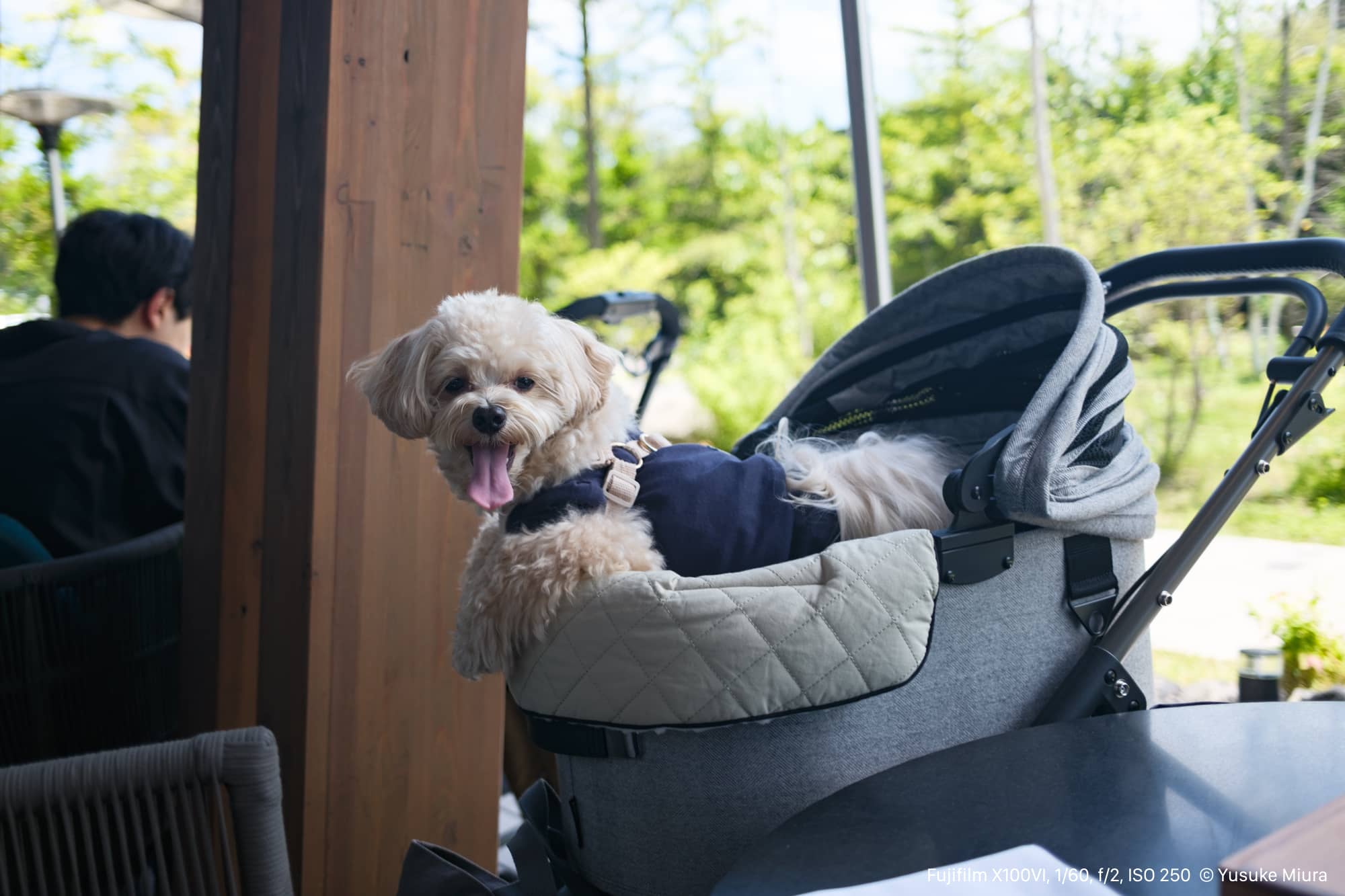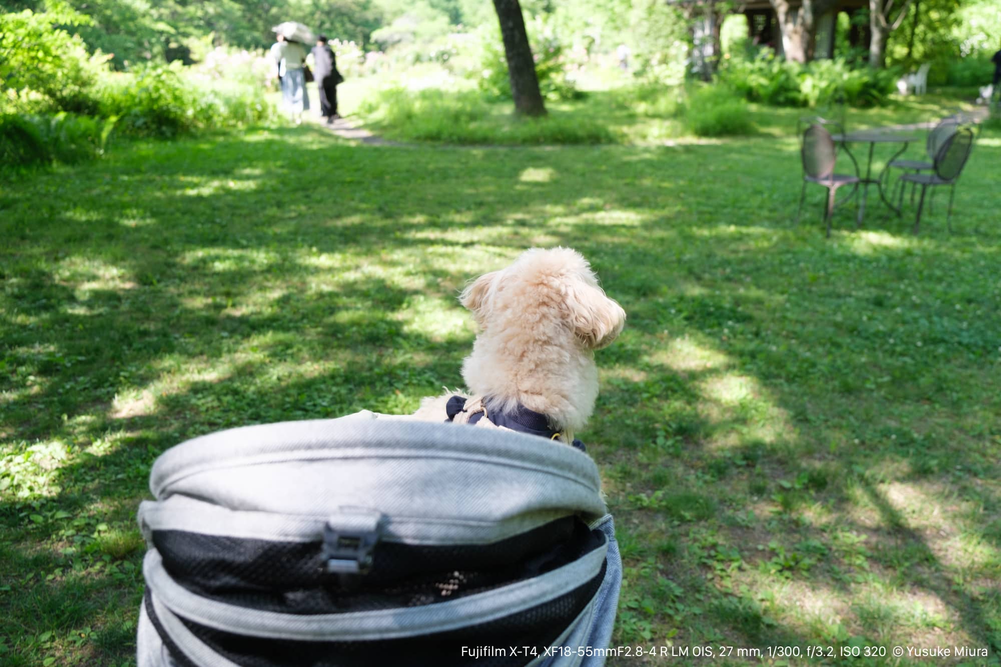 せっかくのイングリッシュガーデンなので犬には歩いてほしかったのですが、ちょっと歩かせるとすぐにカートに乗せろ乗せろと言ってくるんですよ。埒が明かないので乗せてしまう悪い飼い主…